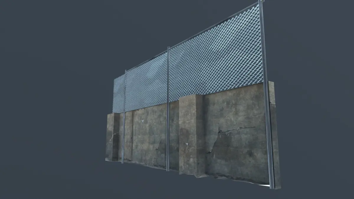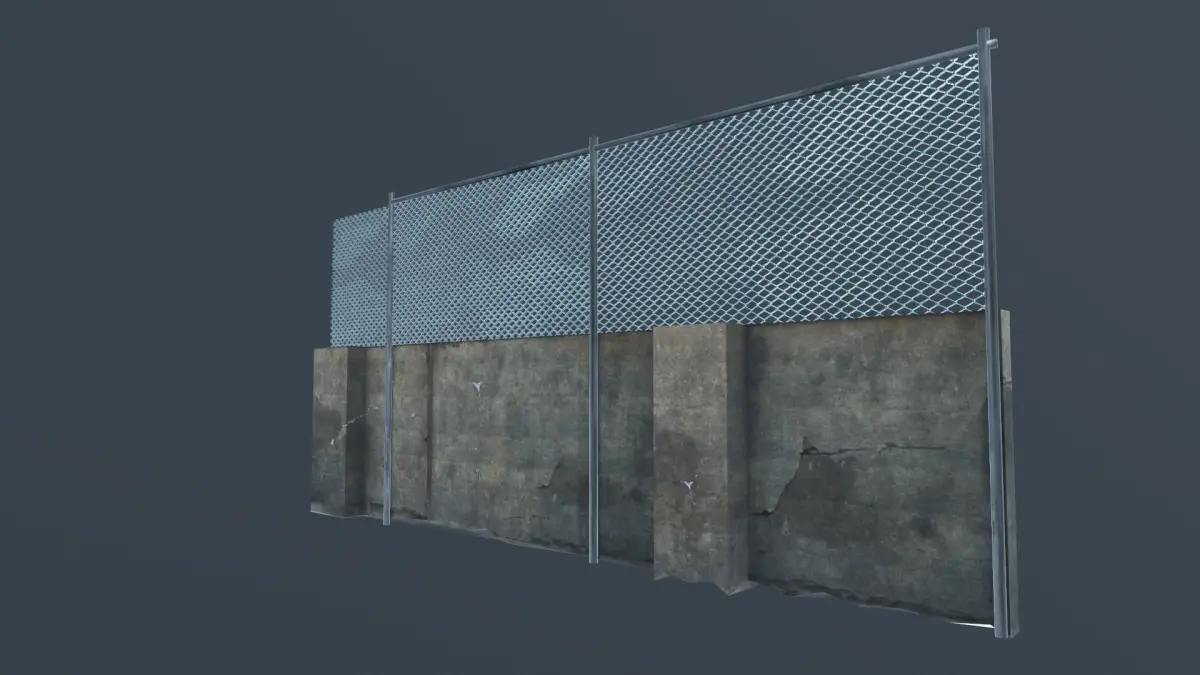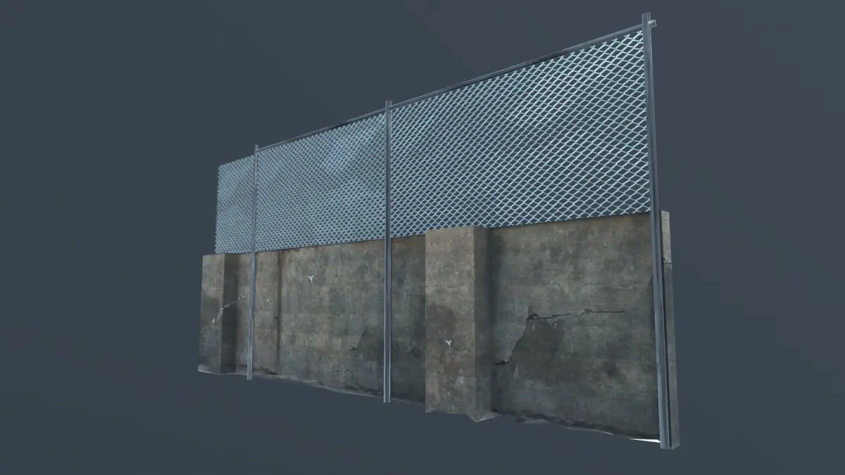 Street wall with metal fence Low-poly 3D model