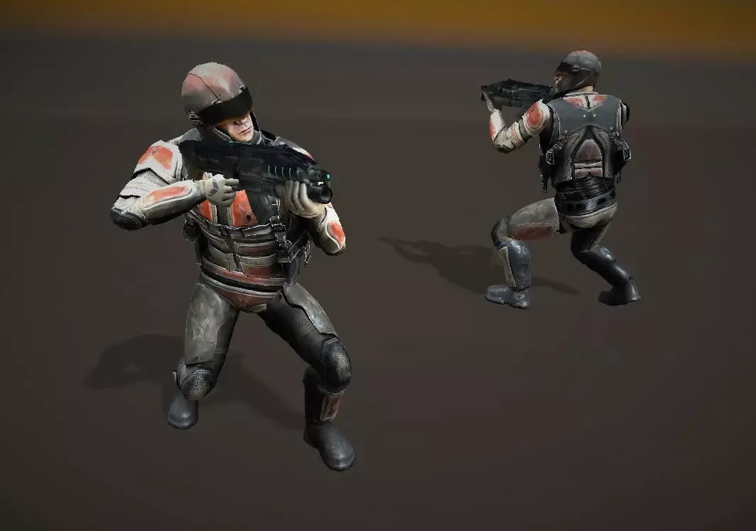 animated model with 55 animations and 20K polygons. 6 materials for helmet, body, armor, visor, addons and gun. Most of them are 4K textures so you can lower them down.