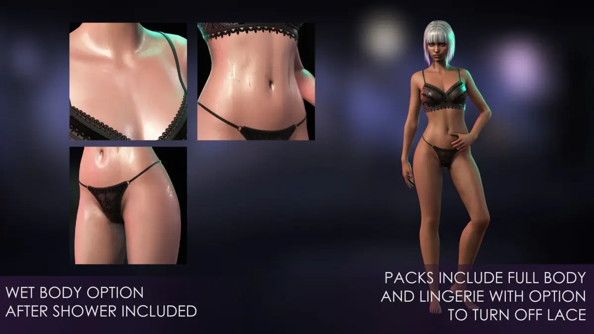 - The female characters have a full body and underwear. Please remember that using a full body with clothing is not recommended to avoid mesh crossing.