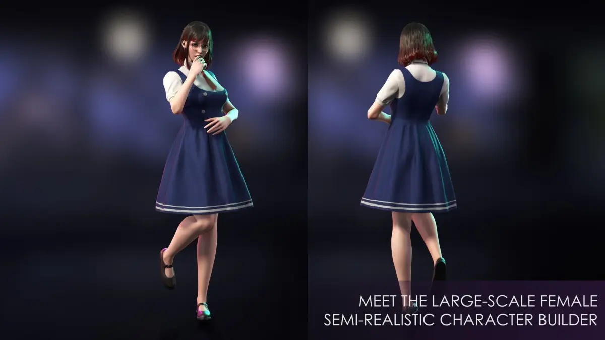 We present to you the largest female semi-realistic character builder on the market, which will be updated according to your requests! This is Girl 2 from School Wear Girls Pack - subscribe to our Arstation or Discord so as not to miss updates!We hope you enjoy - please let us know in case of any questions, we will be happy to help you in our friendly Discord community: https://discord.gg/mQVw8jYZeW