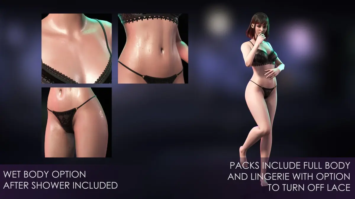 - The female characters have a full body and underwear. Please remember that using a full body with clothing is not recommended to avoid mesh crossing.