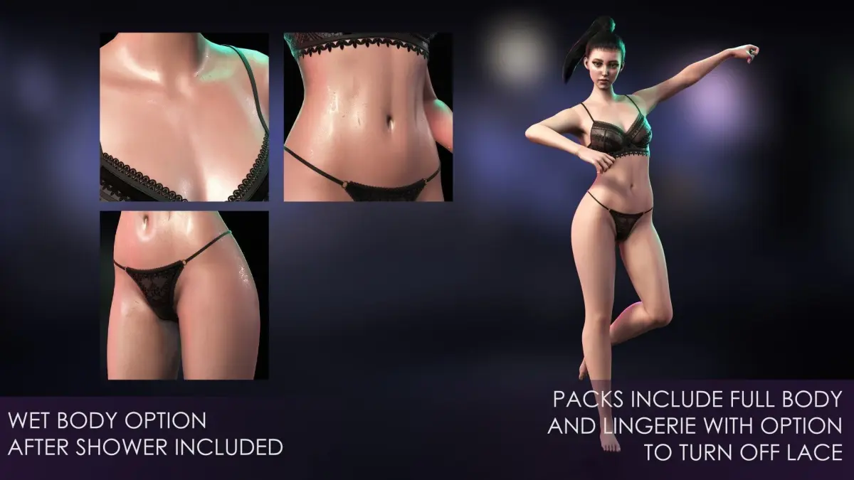 - The female characters have a full body and underwear. Please remember that using a full body with clothing is not recommended to avoid mesh crossing.