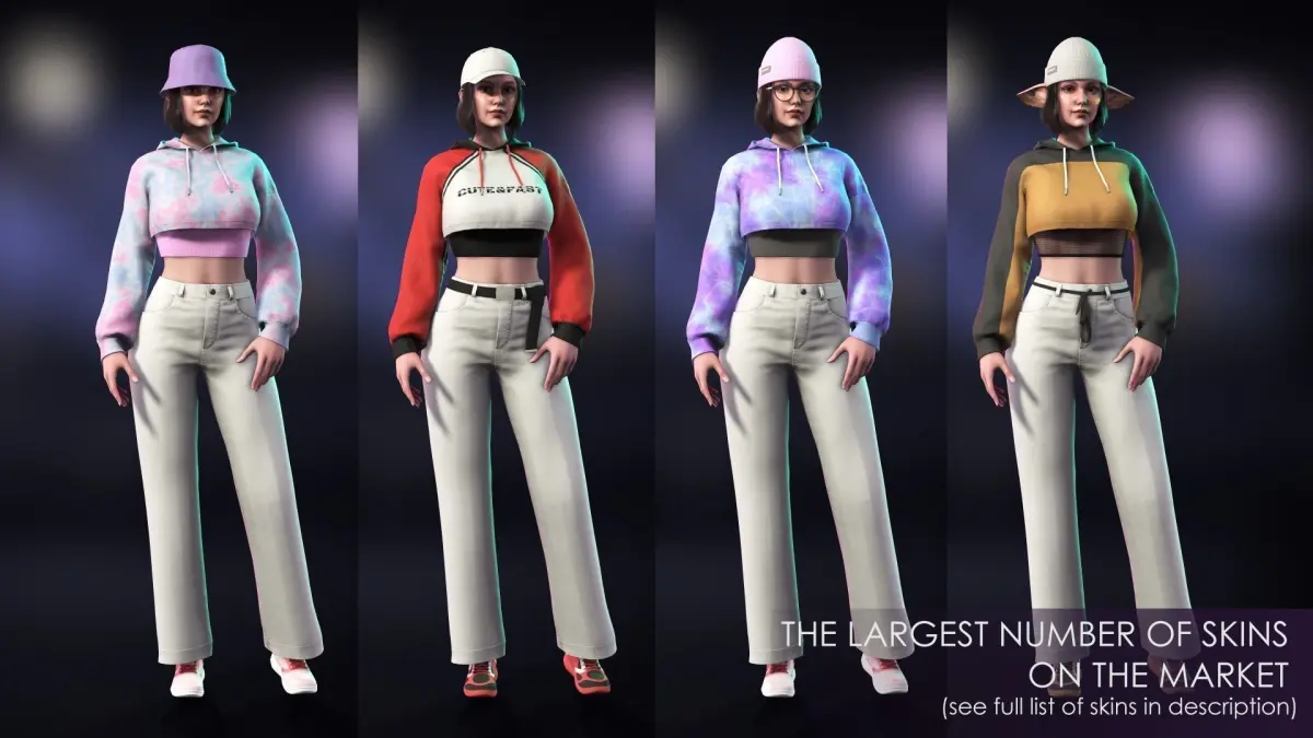 - We took into account your wishes, and most of the clothes and textures are compatible with each other (including top and bottom clothing compatibility) without clipping and other typical problems (see demo video and screenshots). It was a challenging task and we would love your feedback!