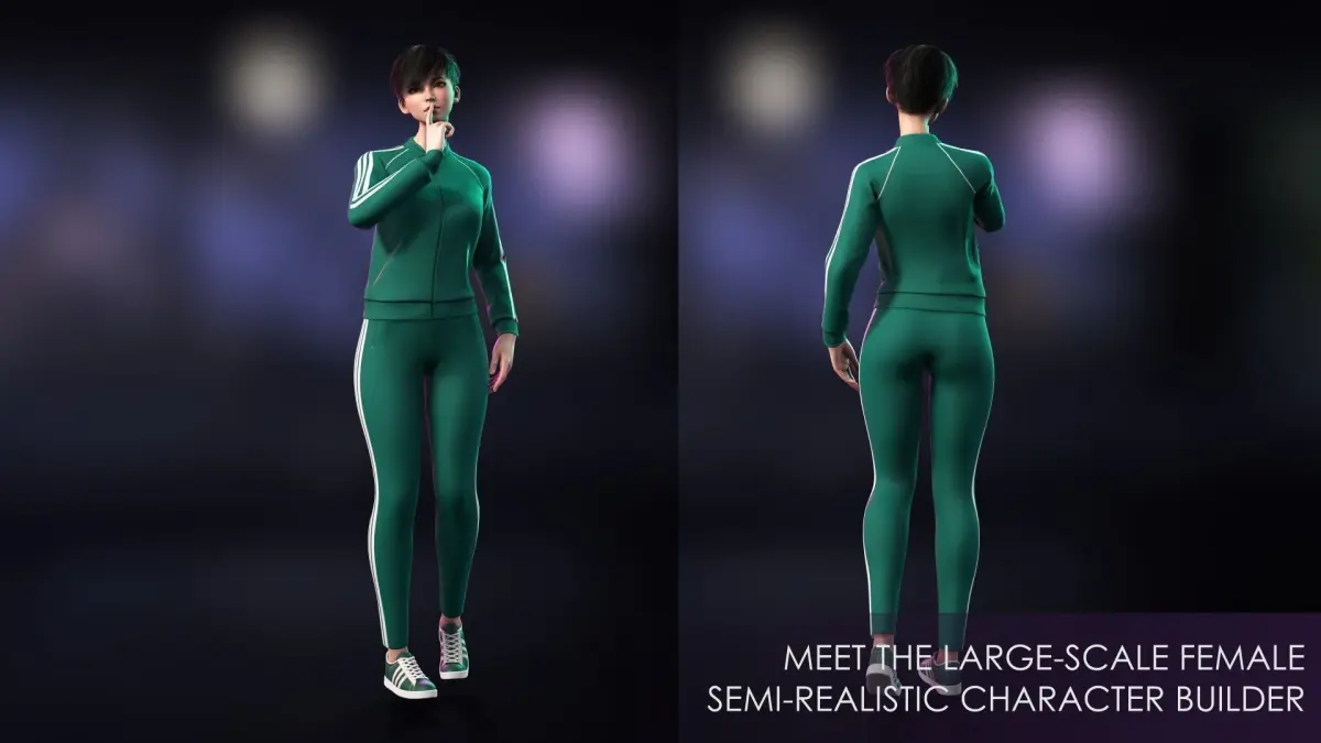 We present to you the largest female semi-realistic character builder on the market, which will be updated according to your requests! This is Girl 3 from Sportswear Girls Pack - subscribe to our Arstation or Discord so as not to miss updates!We hope you enjoy - please let us know in case of any questions, we will be happy to help you in our friendly Discord community: https://discord.gg/mQVw8jYZeW