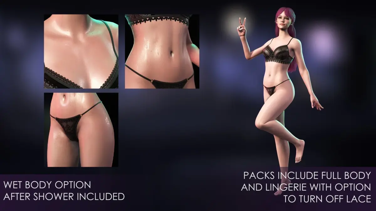 - The female characters have a full body and underwear. Please remember that using a full body with clothing is not recommended to avoid mesh crossing.