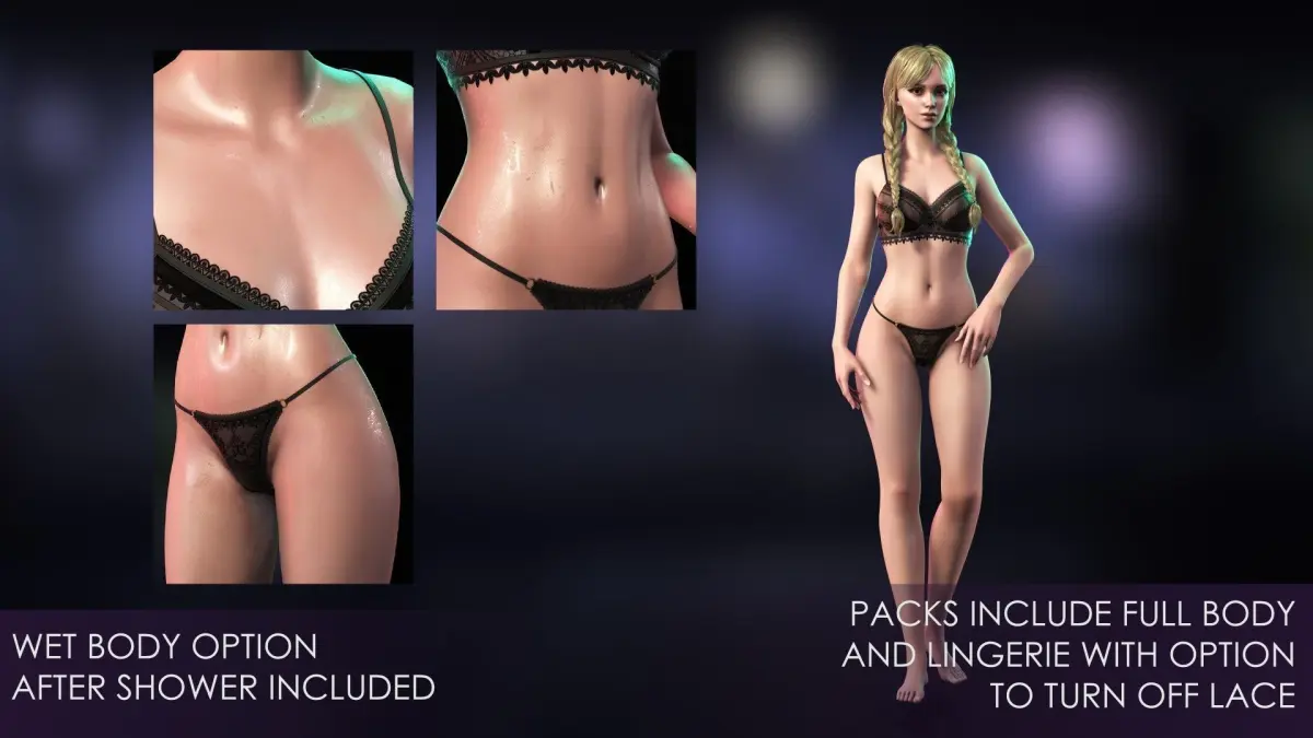 - The female characters have a full body and underwear. Please remember that using a full body with clothing is not recommended to avoid mesh crossing.