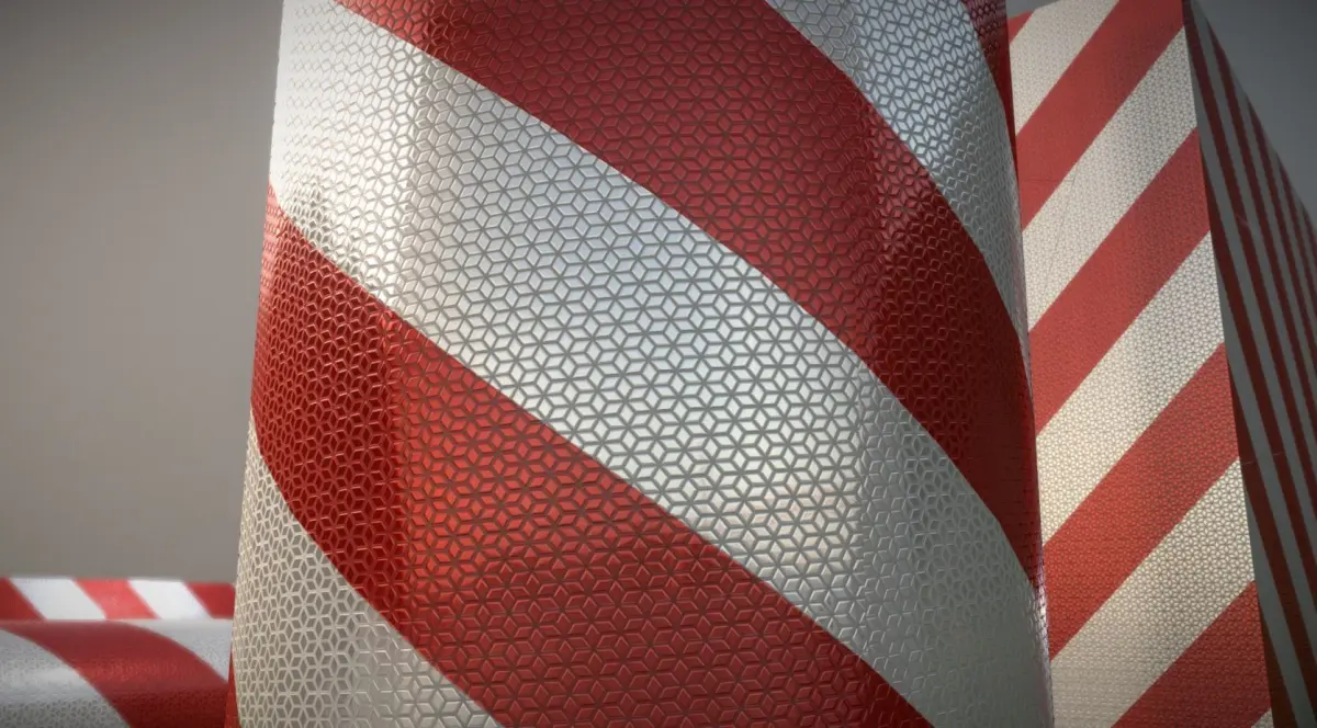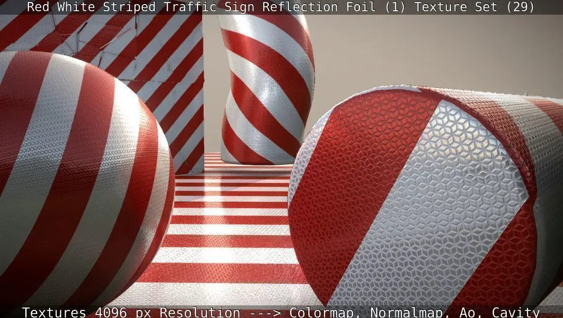 Ein Textur-Set für rot weiß gestreifte Verkehrszeichen Reflexionsfolie.