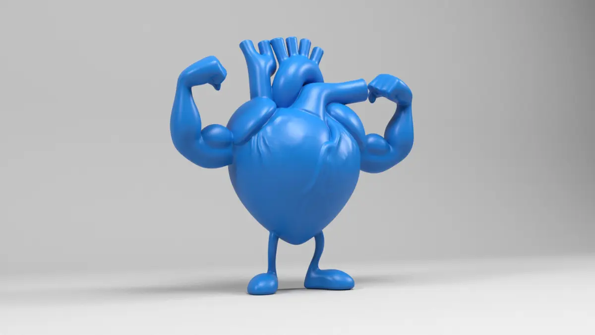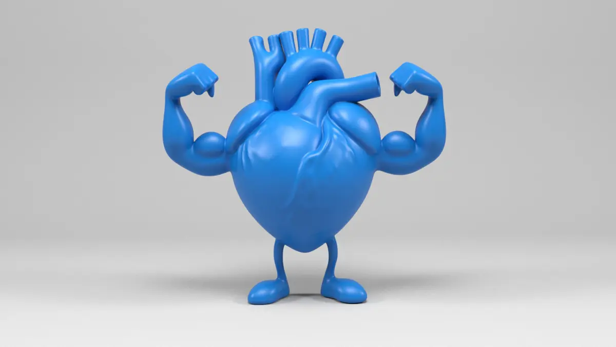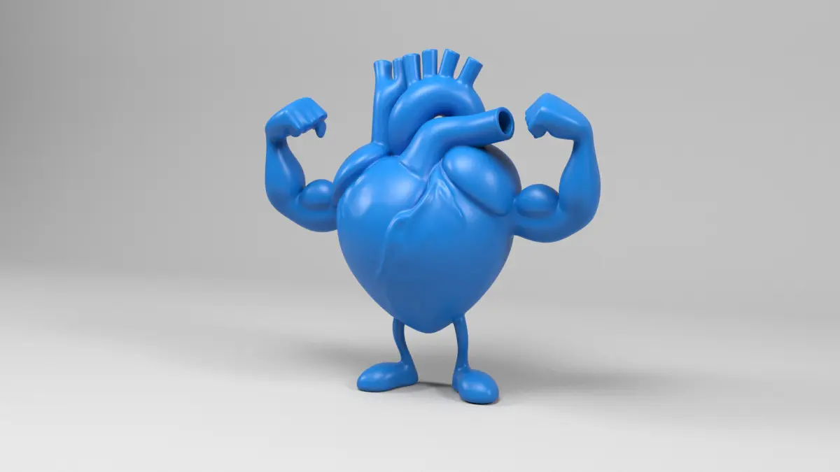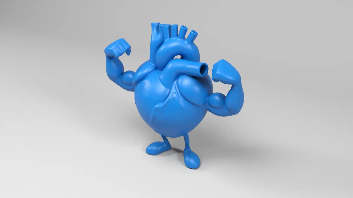 3d model specifically created for 3D printing in different formats ready to print. Model of a Strong heart cartoon style. The following formats are included: STL, 3MF, FBX, OBJ, MAX and Blender. Model printed and tested with bambu lab and Anycubic printers.