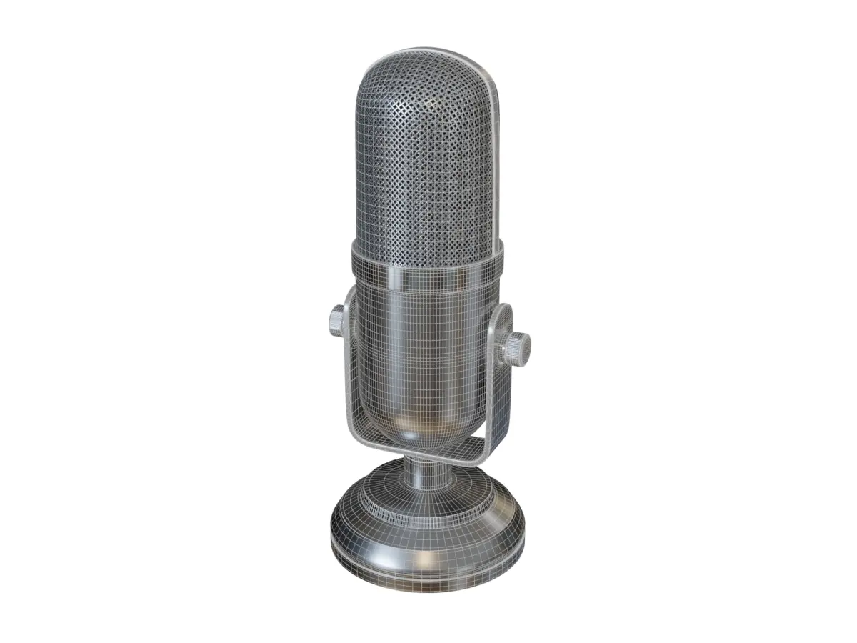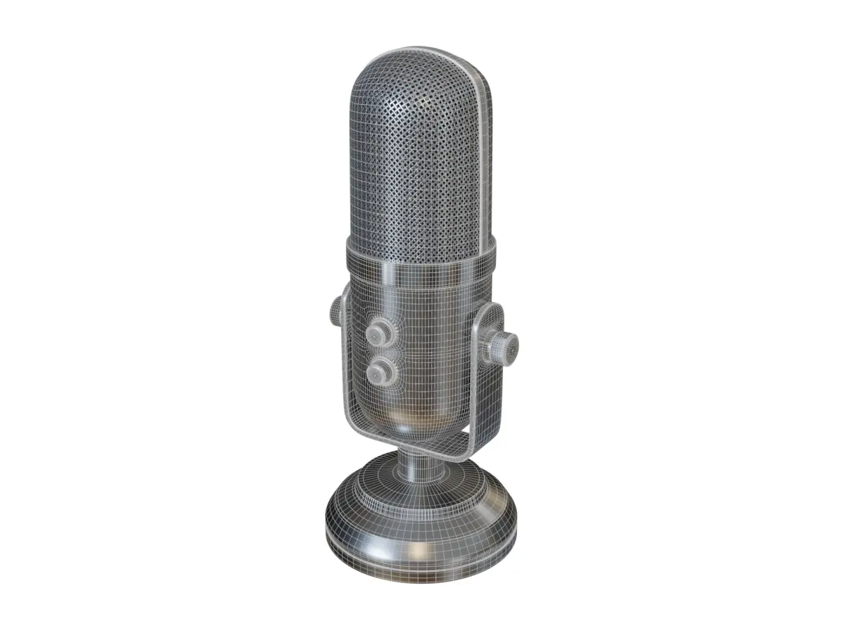 An elegant studio microphone in a silver metallic hue, designed for professional music production and DJing in the present day. The microphone has a slim and elongated form, exuding a contemporary aesthetic.