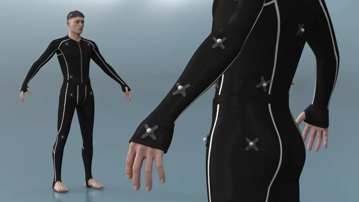 For animation pipelines, VFX previsualization, game development, character rigging, virtual production setups, biomechanics research, 3D body motion capture tutorials, professional film and media studios, and educational materials on performance capture technology.