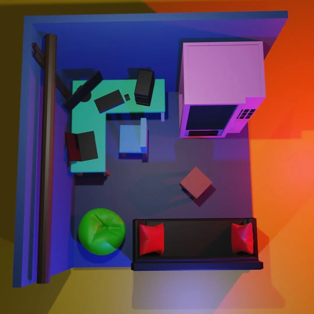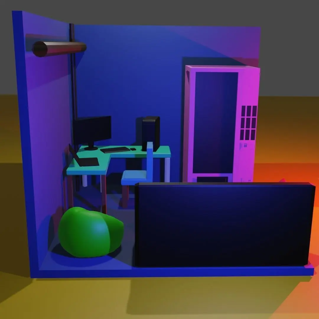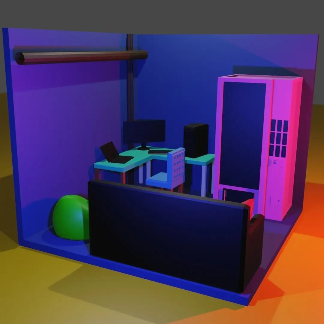 Study Room Student Room Children's Room Computer Room Staff Couch Vending Machine Puff Chair Table Computer Case Keyboard Mouse Monitor Laptop Personal Computer Interior House Light Pillow Work Low Poly Model 3D Office