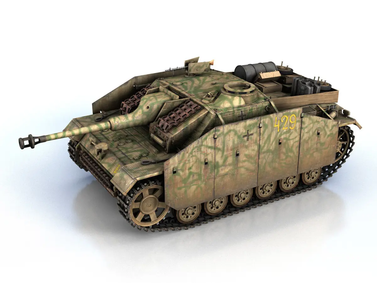 NOTE - In lwo, 3ds, fbx and obj the 5 Bumpmaps (Fender_Bump, Parts_Bump, Gun_Bump, StuG_3G_Bump and Engineflap_Bump) must manually load in the Materialcanal.