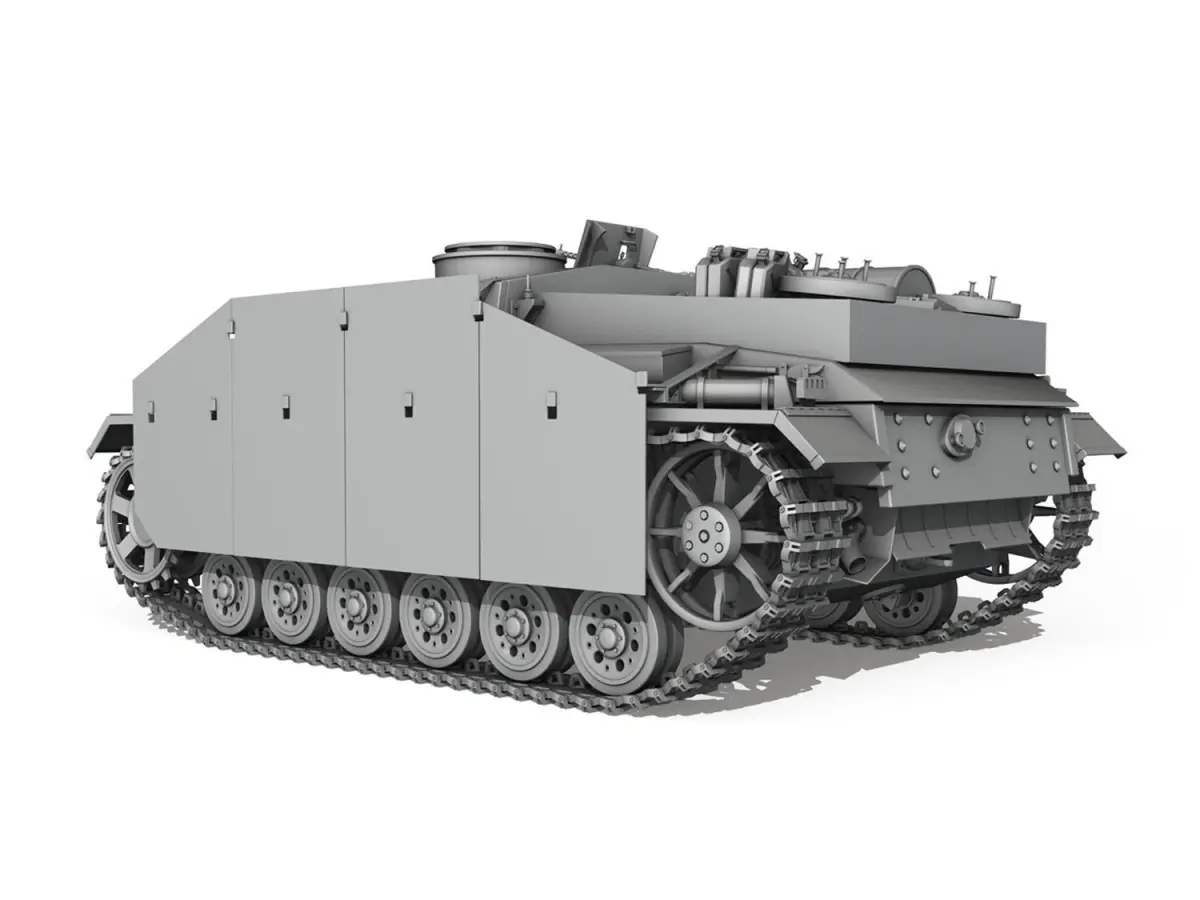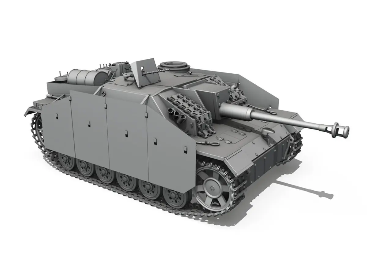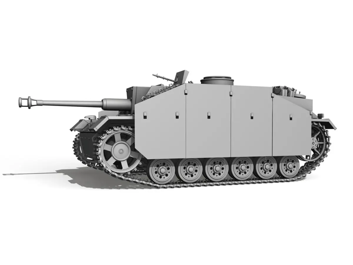 The Sturmgeschütz III (StuG III) assault gun was Germany‘s most produced armoured fighting vehicle during World War II. It was built on the chassis of the proben Panzer III tank. Initially intended as a mobile, armoured light gun for infantry support, the StuG was continually modified and was widely employed as a tank destroyer.