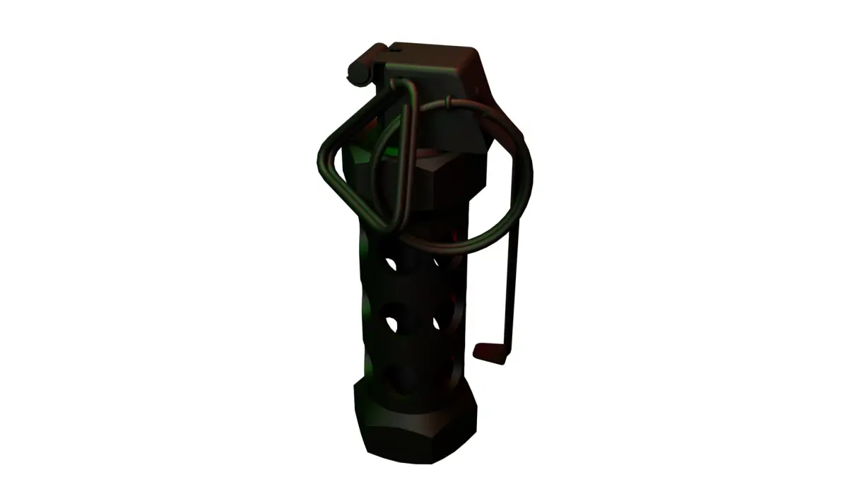 This is a free low-poly 3D model of a stun grenade, perfect for use in games, VR/AR, and real-time applications.