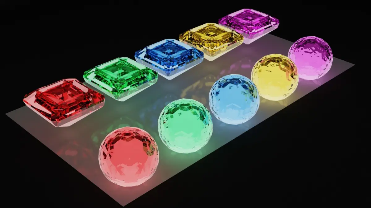 Prepare to be captivated by our meticulously crafted set of eight exquisite diamonds, created with precision and care in Blender. These stunning gems are a kaleidoscope of colors, featuring radiant red, vibrant yellow, deep blue, soft pink, and lush green hues. Each diamond is a unique masterpiece, combining square and spherical shapes to showcase the unparalleled artistry behind their creation.