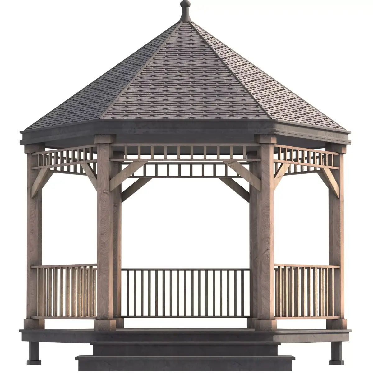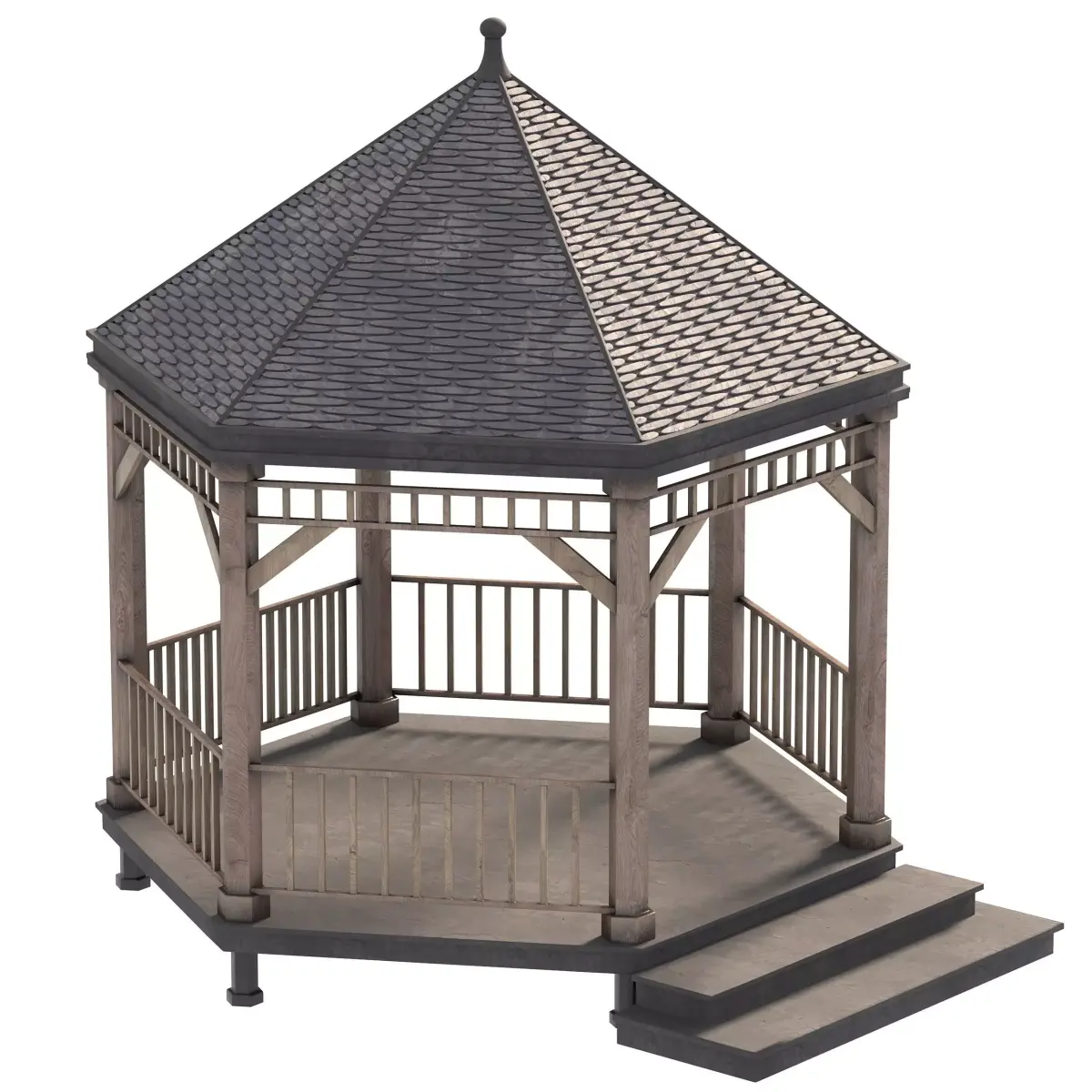 Description:High-quality 3D model of a stunning outdoor gazebo designed for backyards, gardens, and terraces. Featuring a hexagonal structure with a detailed shingle roof, solid wooden frame, and railings, this gazebo is ideal for realistic architectural visualizations.The clean geometry and detailed textures make it suitable for both close-up renders and large-scale landscaping projects. Perfect for use in residential, park, and hospitality exterior scenes.