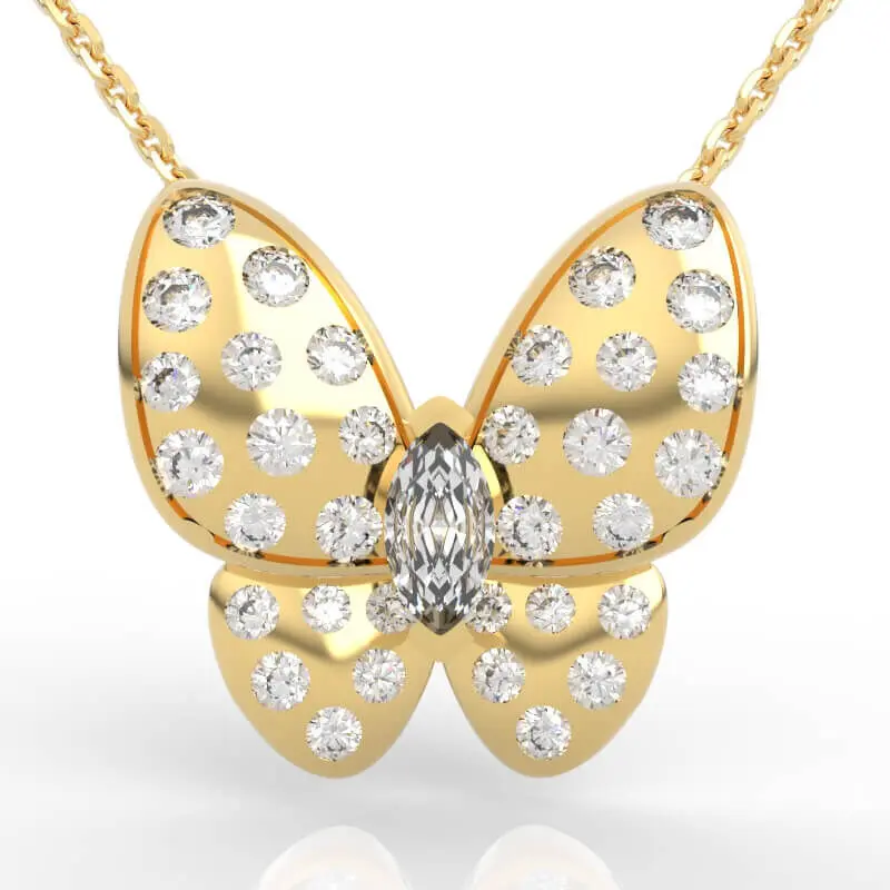 Capture Nature’s Most Enchanting Symbol with Our Exquisite Marquise Diamond Butterfly Pendant