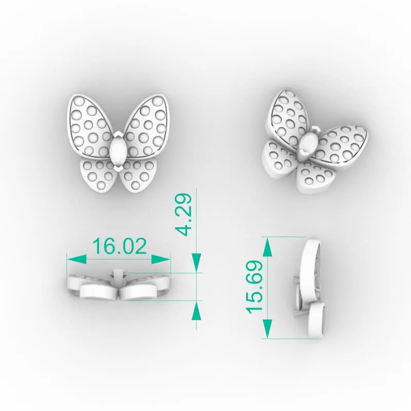 Overall Dimensions: 16.02mm width × 15.69mm height × 4.29mm depthDesign Architecture: Symmetrical four-wing butterfly configurationSetting Style: Pavé diamond setting for maximum brilliance and securityProportion: Perfectly balanced for elegant wearabilityProfessional File Package: Every marquise diamond butterfly pendant model includes comprehensive format options: