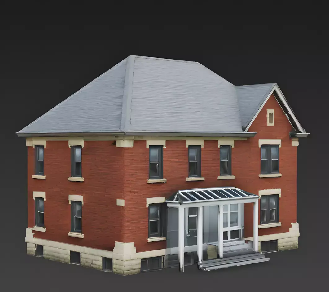 The Overall Concept This asset is a classic example of historic urban architecture, specifically inspired by the Chicago Bungalow style. It is a solid, two-story family home designed for city neighborhoods, historical settings, or mid-20th-century levels.