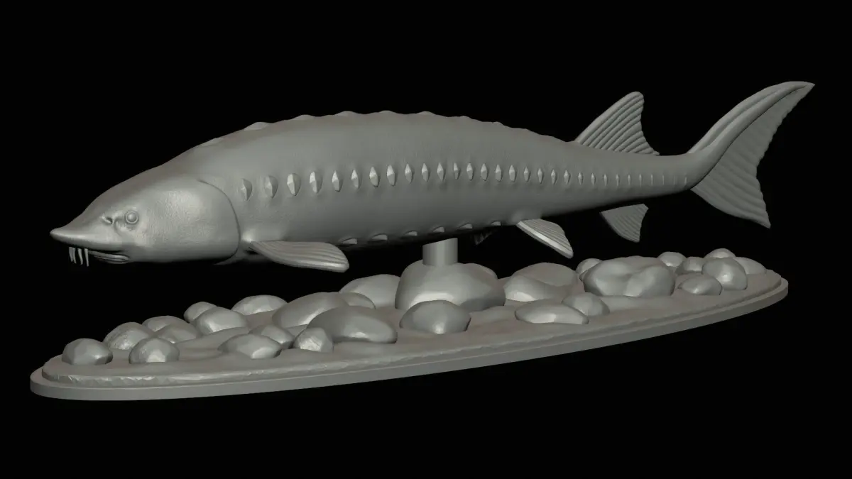 sturgeon vyza fish underwater statue detailed texture 3D print model