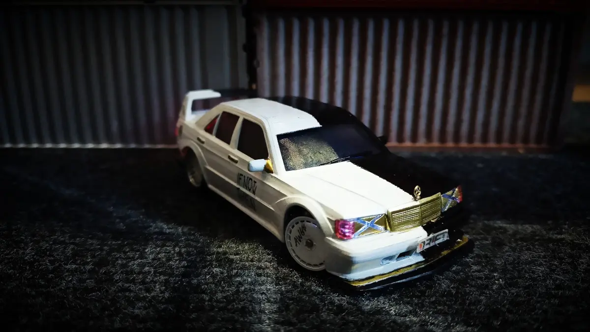 Modèle 3d d'une Mercedes 190 evo2 pour les RC Sturmkind.En revanche celle si est un peu spéciale car c'est une version modifiée pour correspondre a la 190e version asap Rocky
