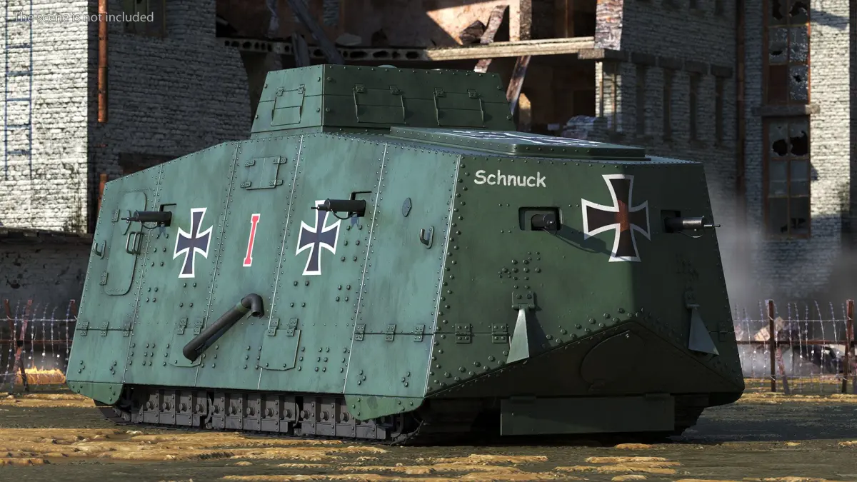 Sturmpanzerwagen A7V Deutscher WW1 Panzer Rigged is a 3d model of the German A7V tank, one of the first armored fighting vehicles used during World War I.