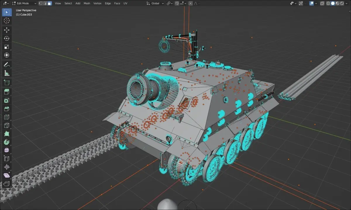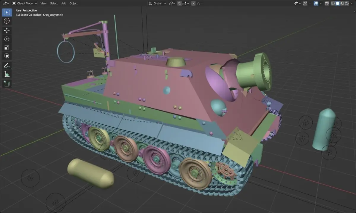 Details are made with parental relationships.You can move along the global axis X for the housing.In this case, the entire tiger will move, the wheels rotate, the tramps move.You can rotate the tap along the axis Z. You can also open the top hatch loading hatch.
