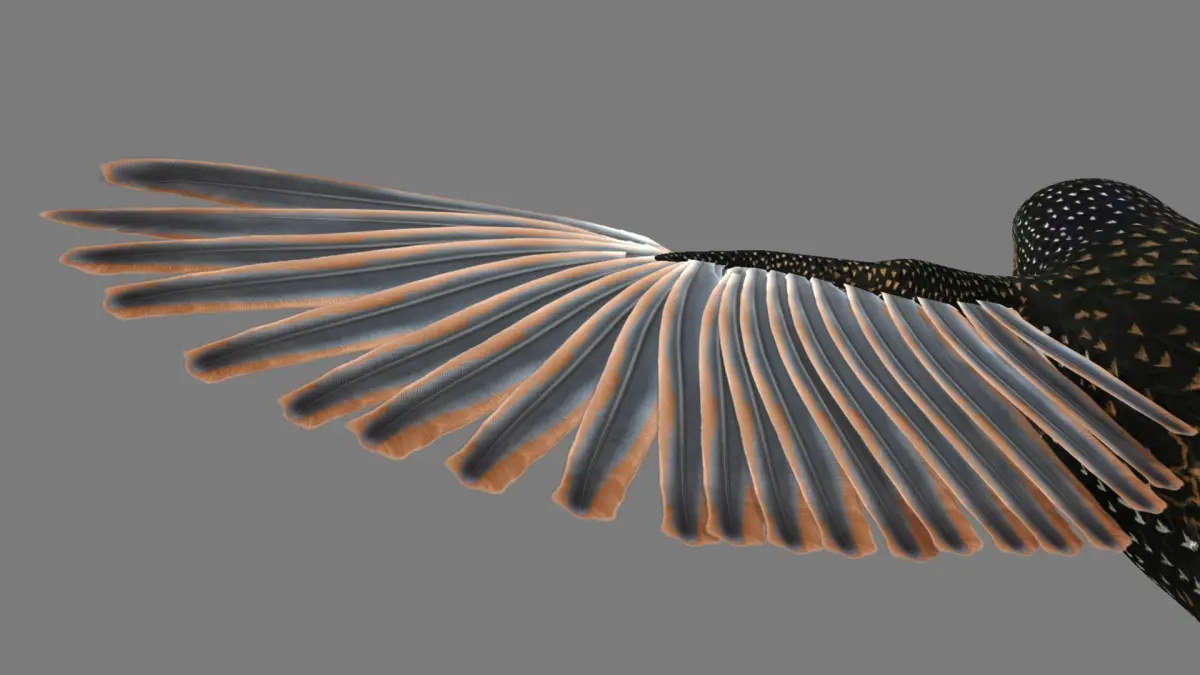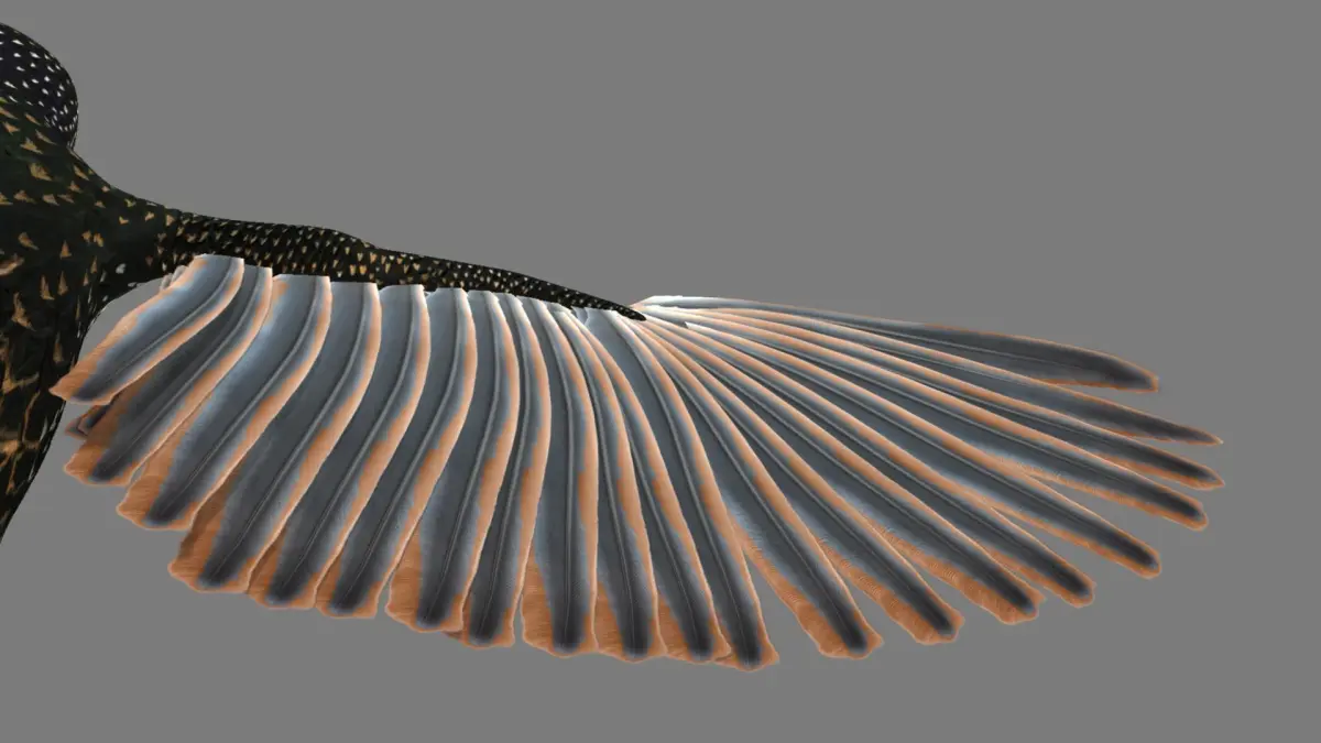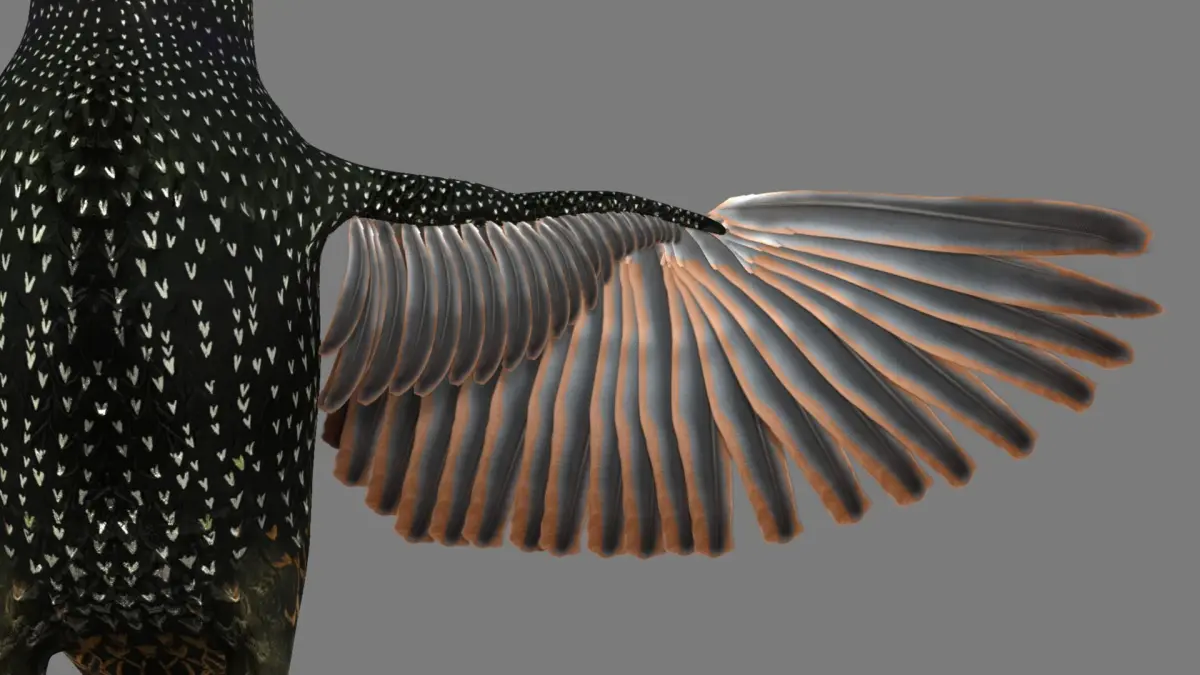 This Sturnidae or Starling looks real with the textures. The Bird opened its wings.