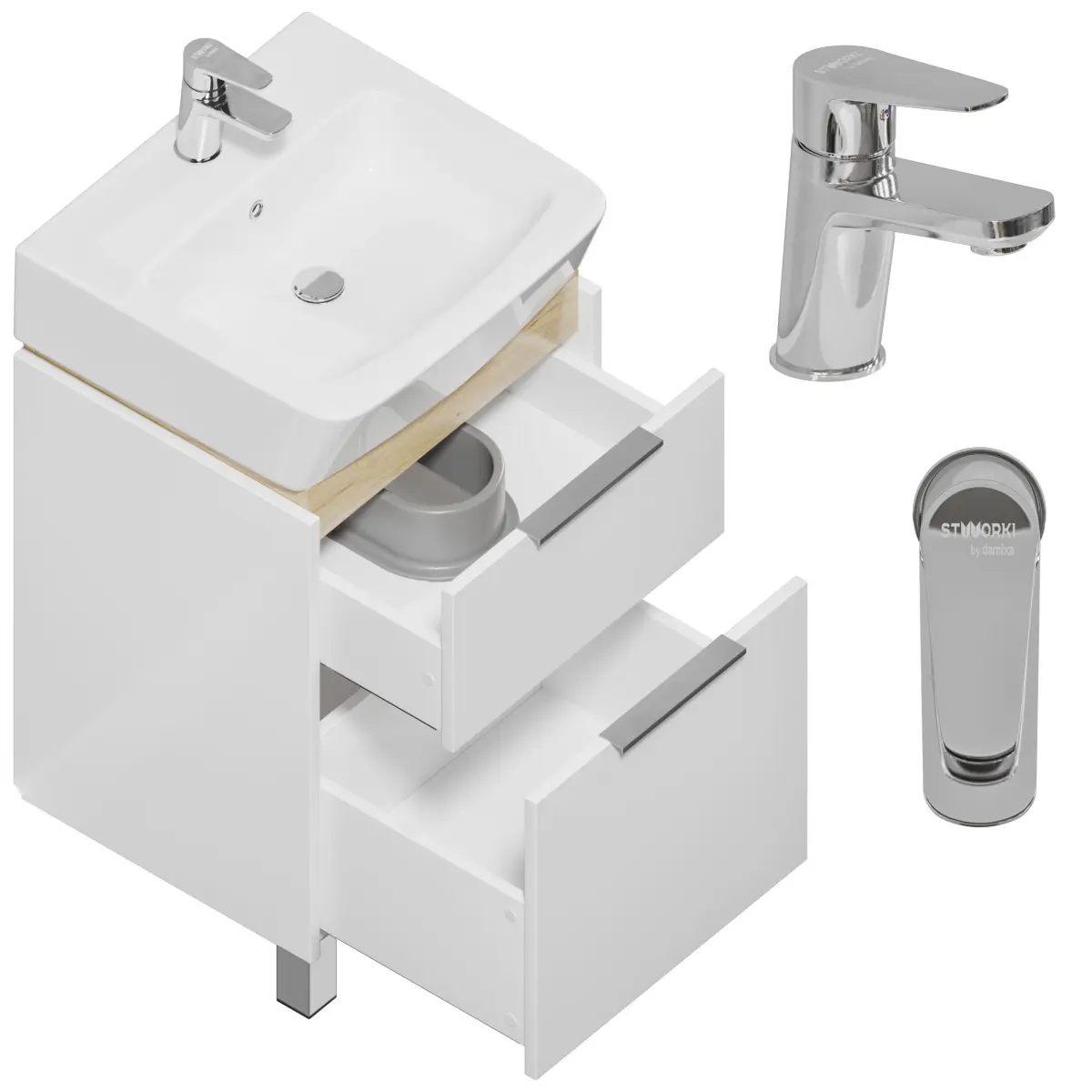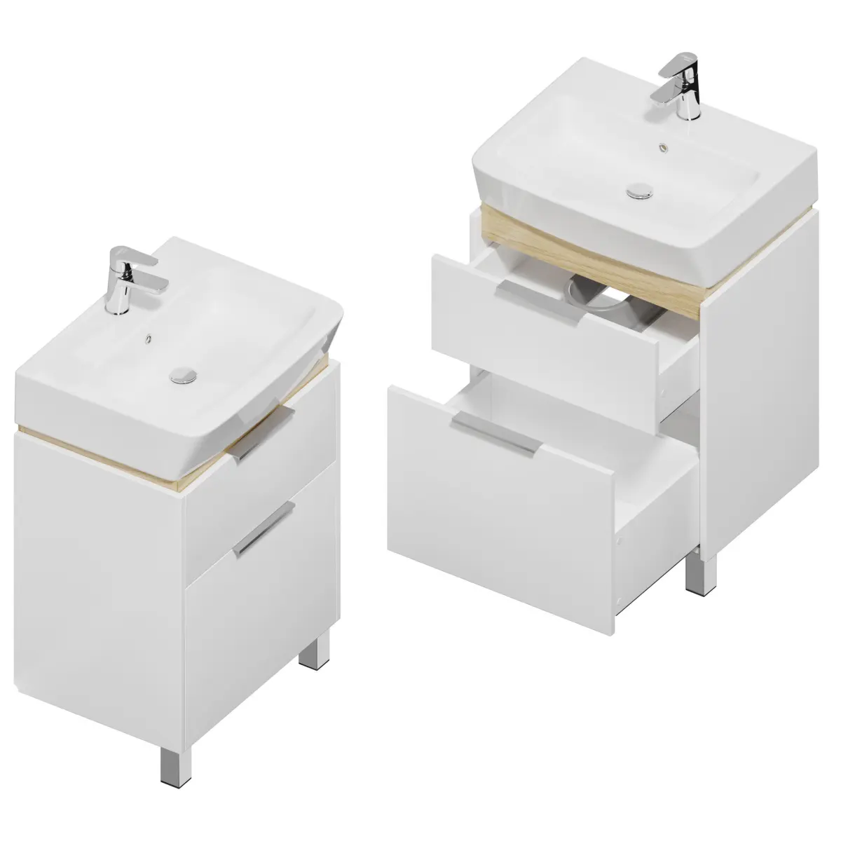 Cabinet 50: Dimensions (WxHxD): 500x430x826 mm Cabinet 60: Dimensions (WxHxD): 600x445x826 mm Color: Light Oak Inserts with Glossy White Facade