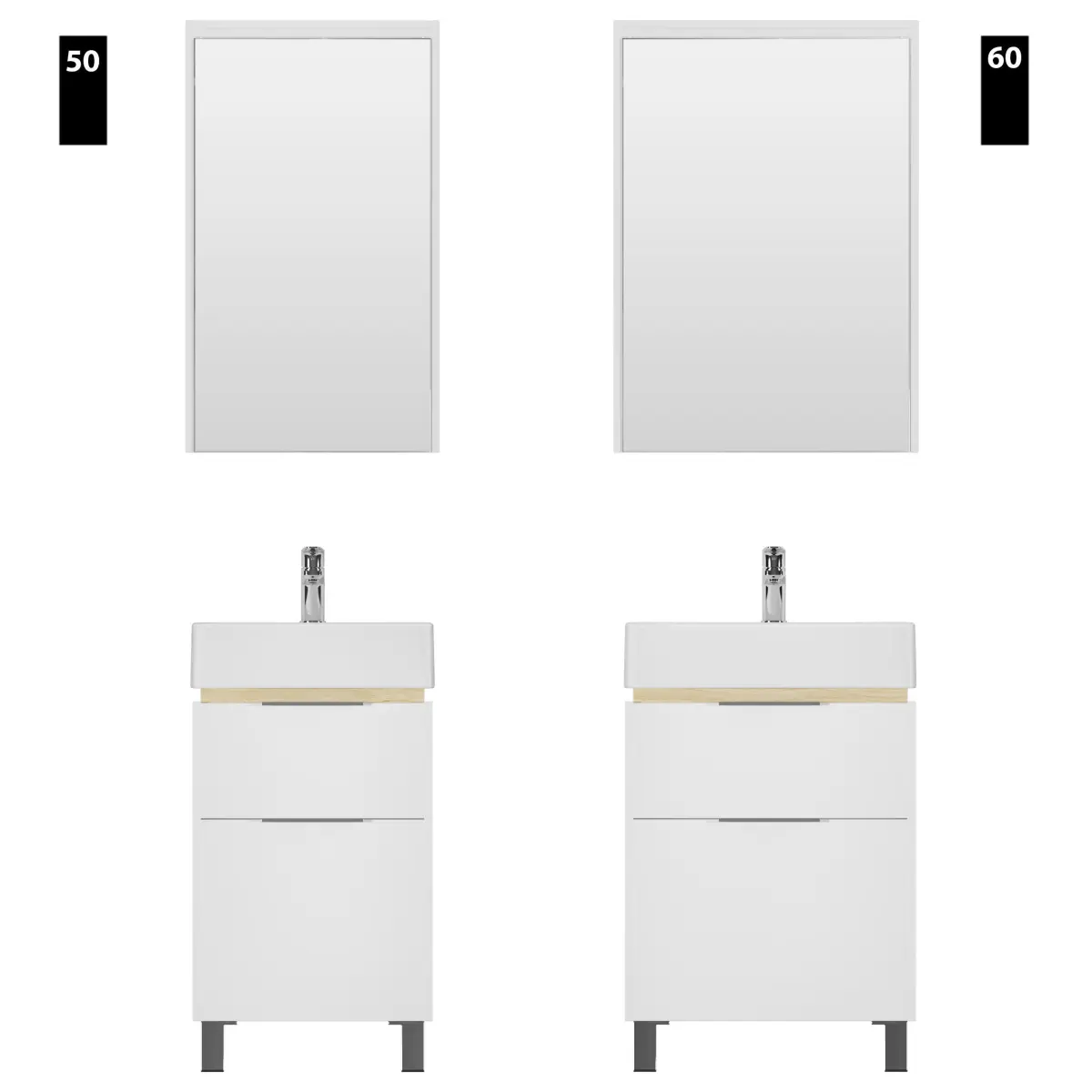 Mirror Cabinet 50: Dimensions (WxHxD): 500x850x150 mm Mirror Cabinet 60: Dimensions (WxHxD): 600x850x150 mm Color: White Gloss