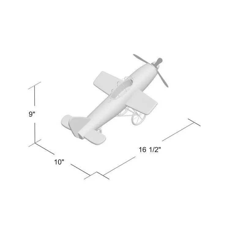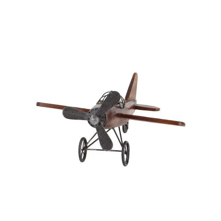 - The vintage design of this home decor brings a sense of the past to your home This miniature is a marriage of fir wood and solid metal This item highlights an natural wood brown fuselage finish with propellers, wheels, and cockpit in grey accent finish Features an old propeller aircraft design Sculpture measures 16L x 14W x 9"H and weighs 2 lbs