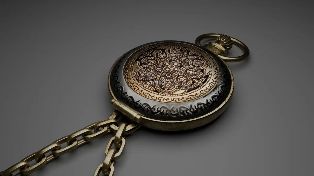 An aged pocket watch in silver and gold guild with enamel inlay. Complete with chain.Includes blender files and .fbx tested in Unreal Engine with materials as well as .obj and .stl for any 3D printing edits.