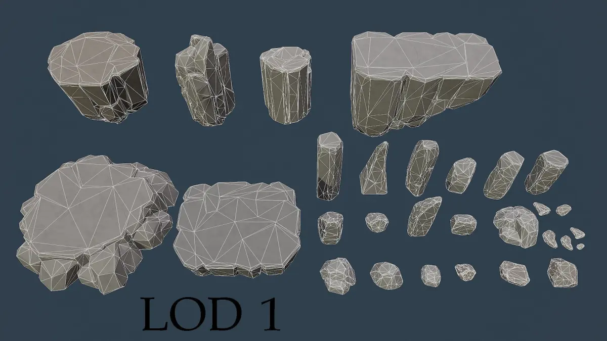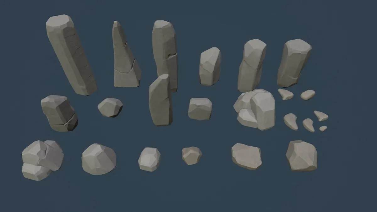 Pack contains 27 stylised rocks and stones with two LODS