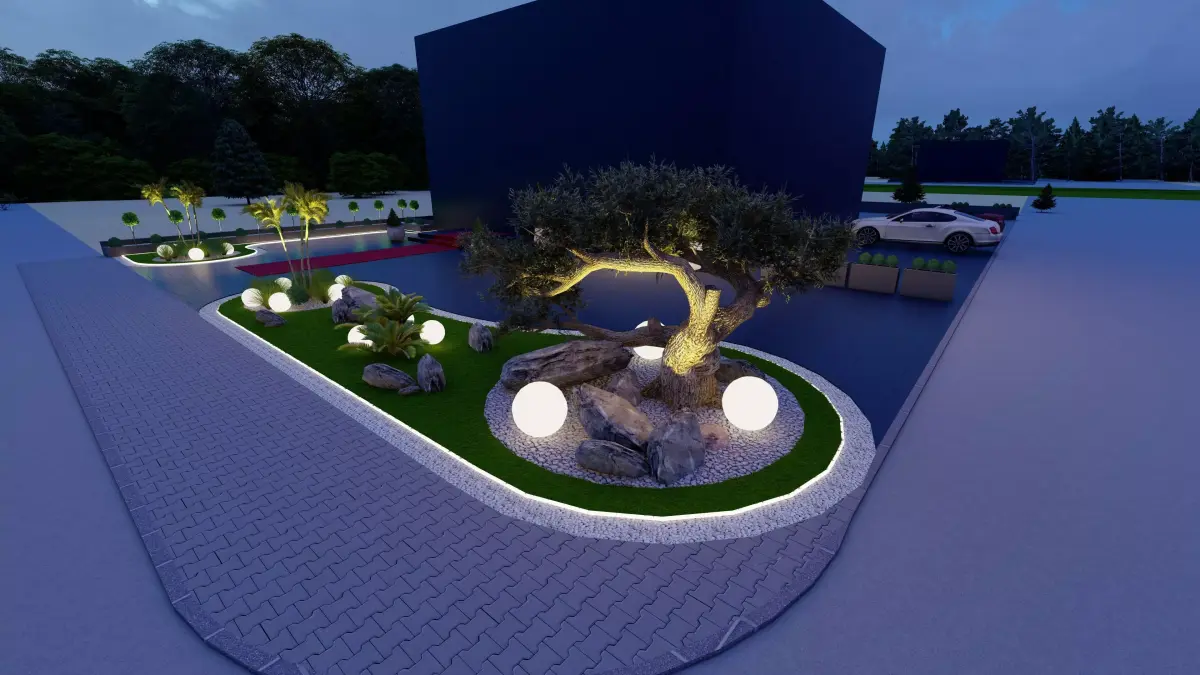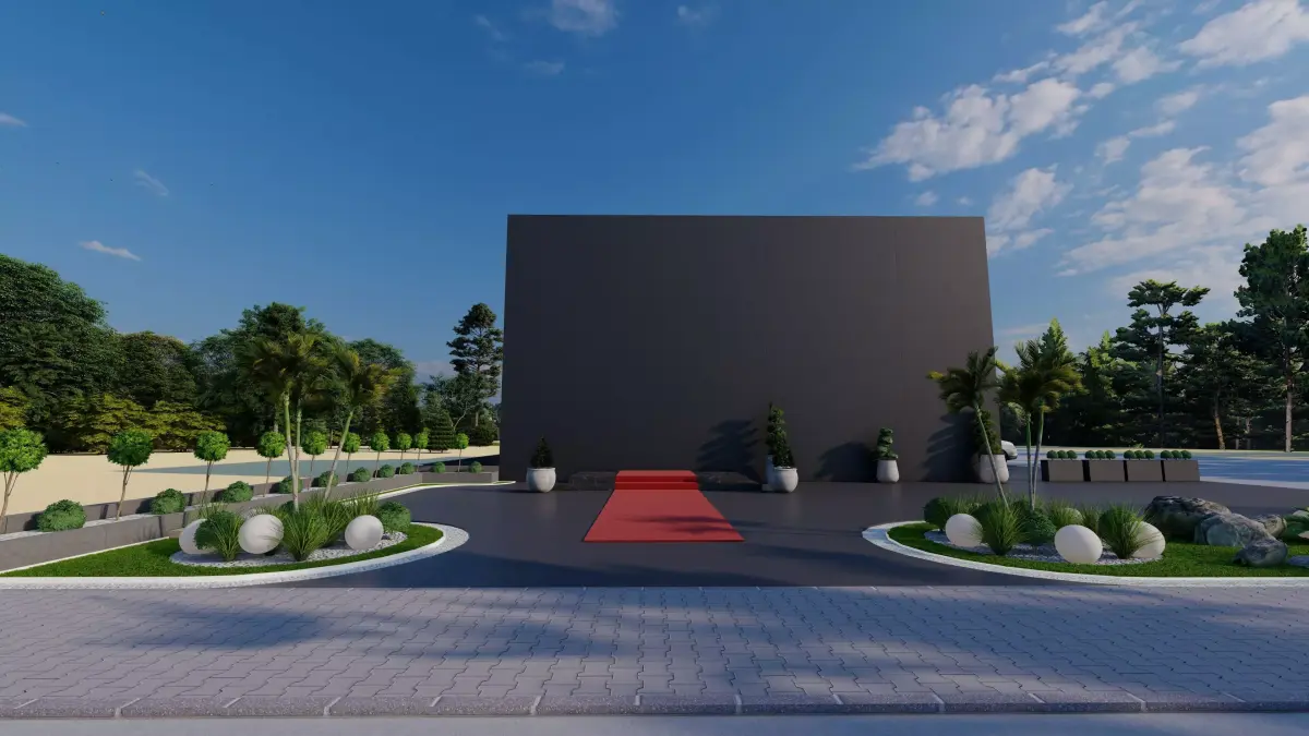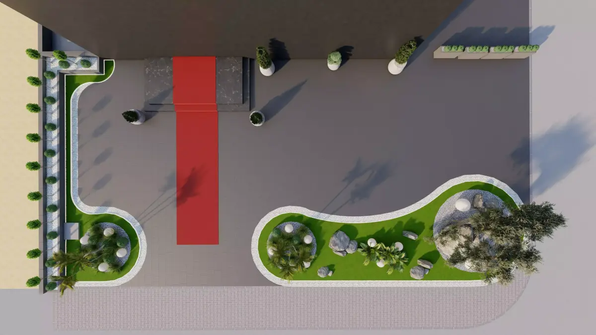 Featuring modern landscaping, decorative elements, and realistic design, this model is perfect for commercial exterior scenes, real estate presentations, and client proposals.