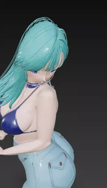 A high-quality 3D anime-style female model featuring detailed textures, dynamic lighting, and realistic clothing folds. The design captures a confident and expressive pose, ideal for collectors or 3D printing enthusiasts who appreciate precision and vibrant color rendering.