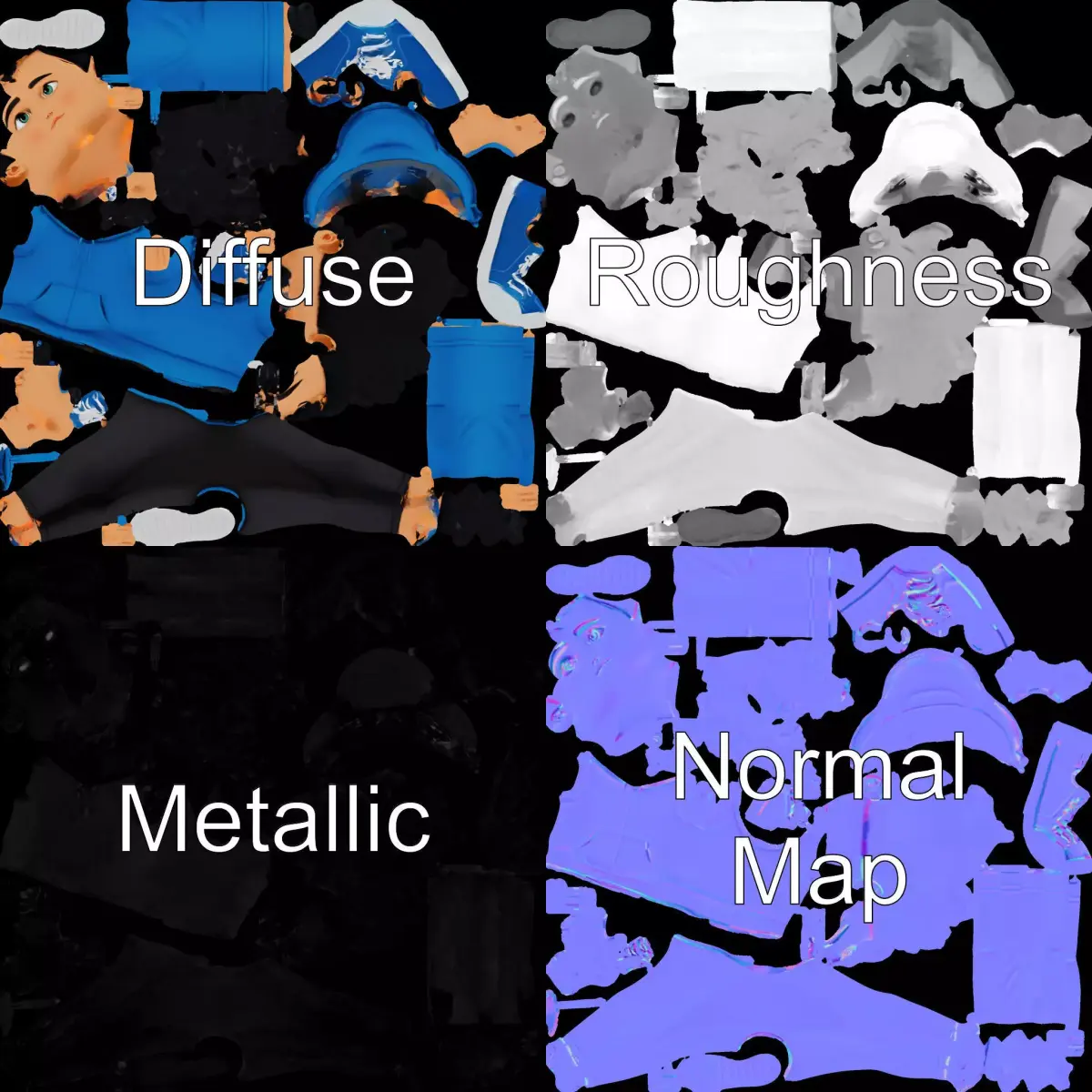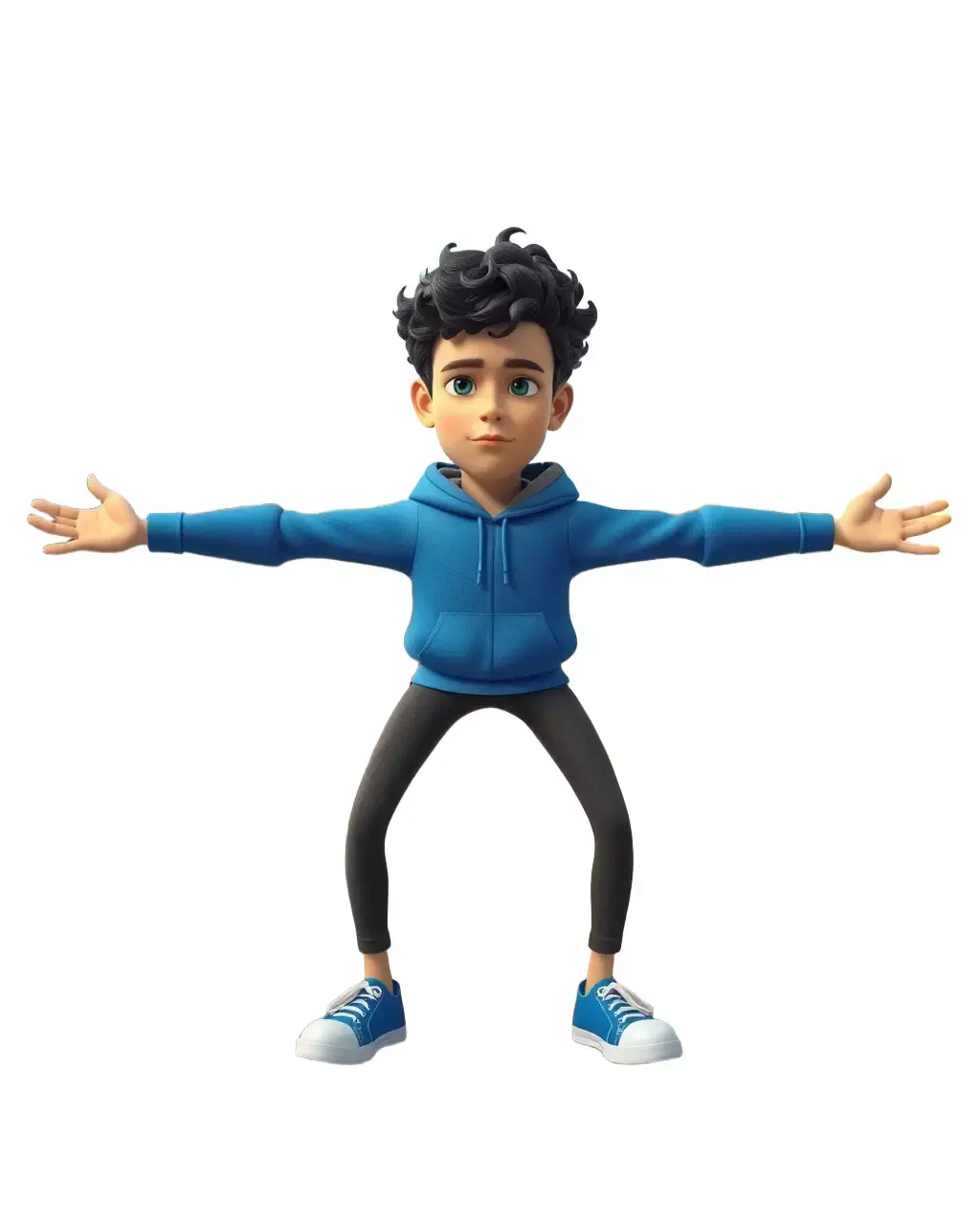 This 3D model features a stylish boy character dressed in a blue hoodie and sneakers. The model is perfectly suited for animation projects, game development, and virtual reality environments. Each model has 3 levels of detail: low-poly (1000 triangles for mobile), middle-poly (10,000 triangles for environment), and high-poly (100,000 triangles), which allows for the use of this model in production rendering (such as 3ds Max, Maya, Cinema4D, Blender, Vray/Corona/Cycles and all others), game engines (Unity and Unreal compatible), and interactive presentations, providing a choice of detail based on the LOD System principle. The model's textures are PBR, Diffuse, NormalMap, and reflection/roughness/metallic, which are suitable for any modern rendering engine. All models accurately unwrapped and have no overlapping UV. Textures are 4096x4096 in size. Please like and leave a comment if you enjoyed this model.