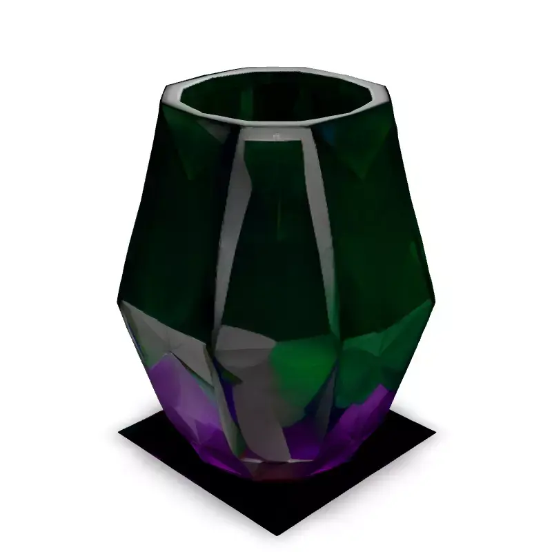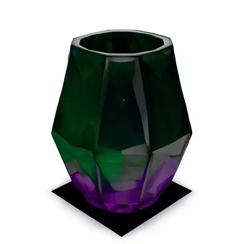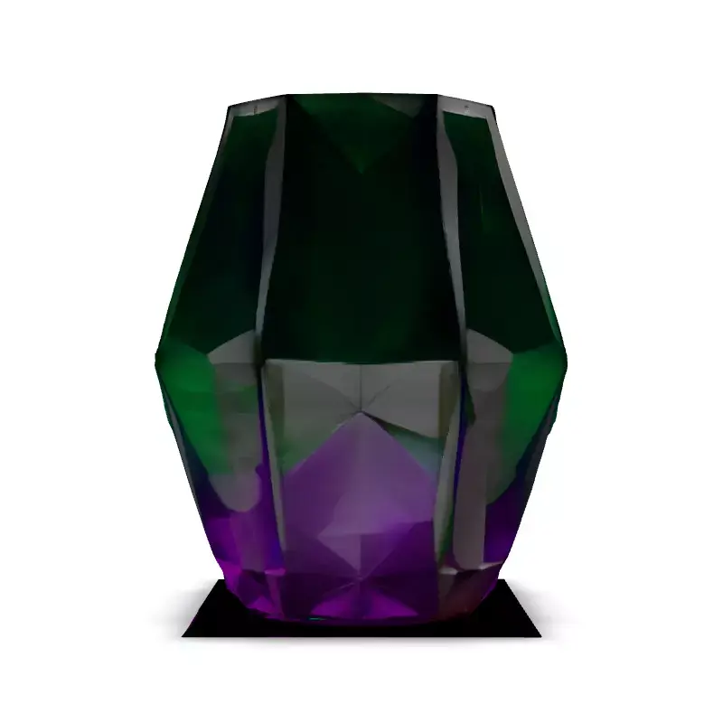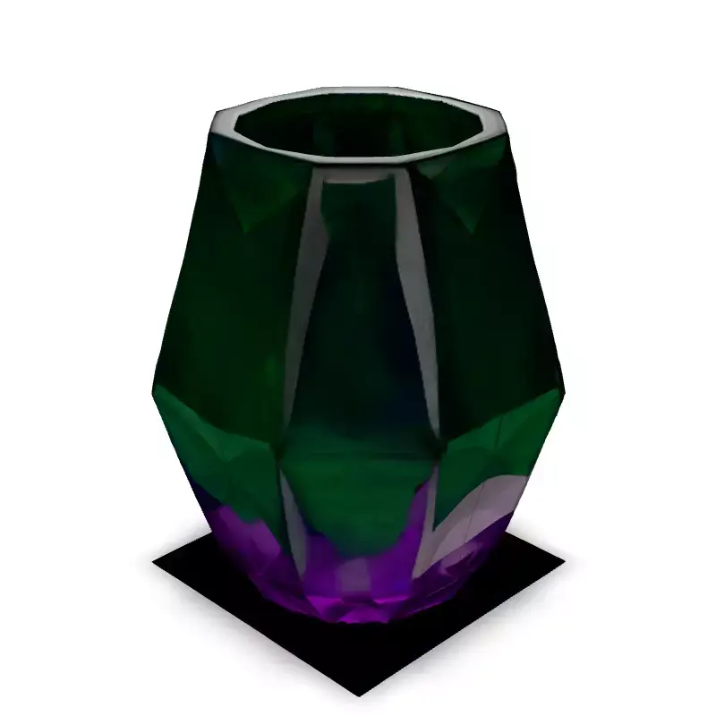 This stunning 3D model showcases a faceted crystal vase with a captivating gradient, transitioning from emerald green to a rich amethyst purple. Ideal for adding a touch of elegance to interior scenes, product visualizations, or even as a game asset. It can be used in various applications, including architectural visualization, game development, AR experiences, and digital art. Available in multiple formats (GLB, OBJ, FBX, STL), this model is optimized for both real-time and static rendering. Its clean topology and precise UV unwrapping ensure easy integration into any project. Featuring PBR textures, the vase exhibits realistic light interaction and material properties, making it suitable for high-quality renders. Whether you're creating a luxurious living room scene or designing a fantasy game prop, this versatile model is ready to elevate your projects. Key features include a clean mesh, PBR materials, and accurate representation of glass refraction.