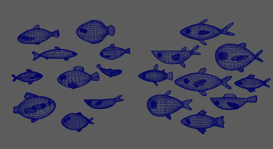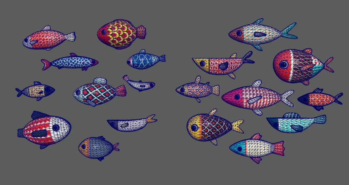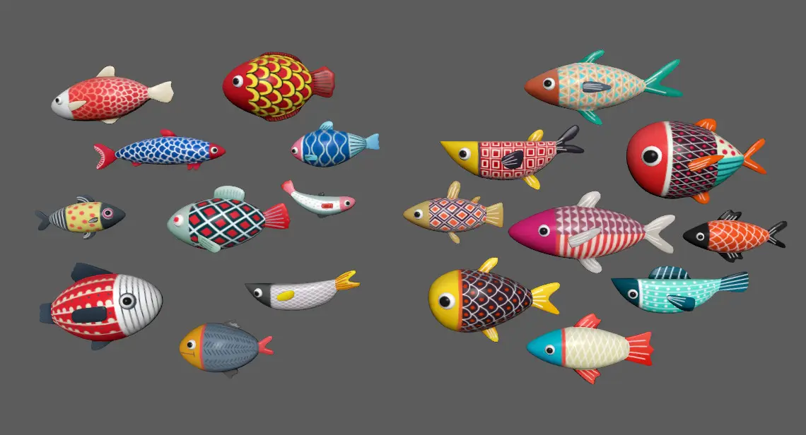 Stylish fish schools Low-poly 3D model