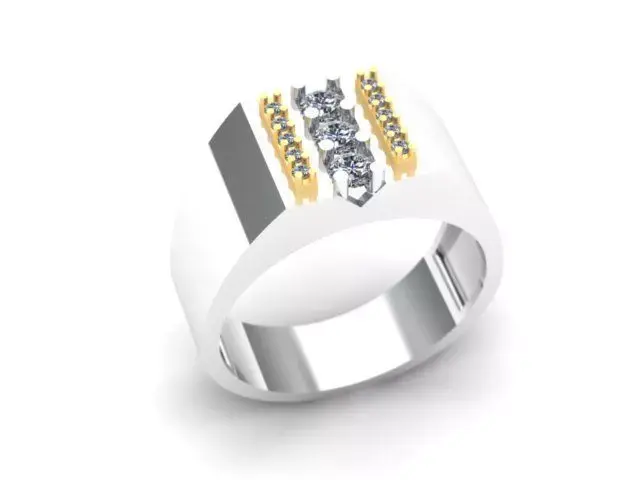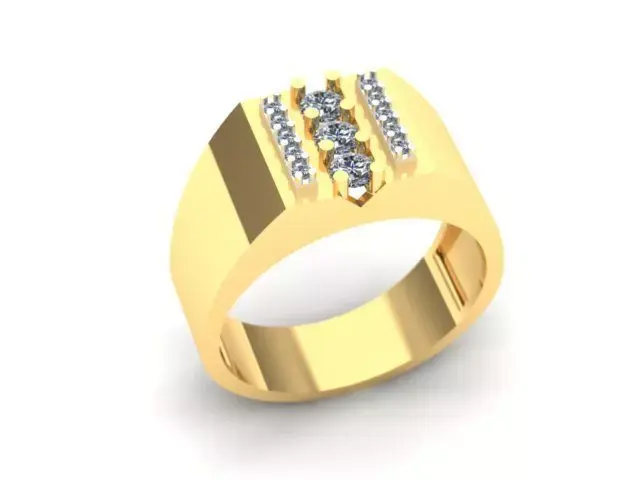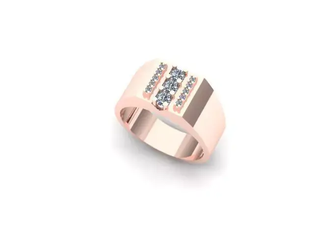 This is a 3D CAD model of a Men’s Gold Band Ring with Triple Row Round Stones. The design is modern, stylish, and suitable for jewelry manufacturing, rendering, or 3D printing.