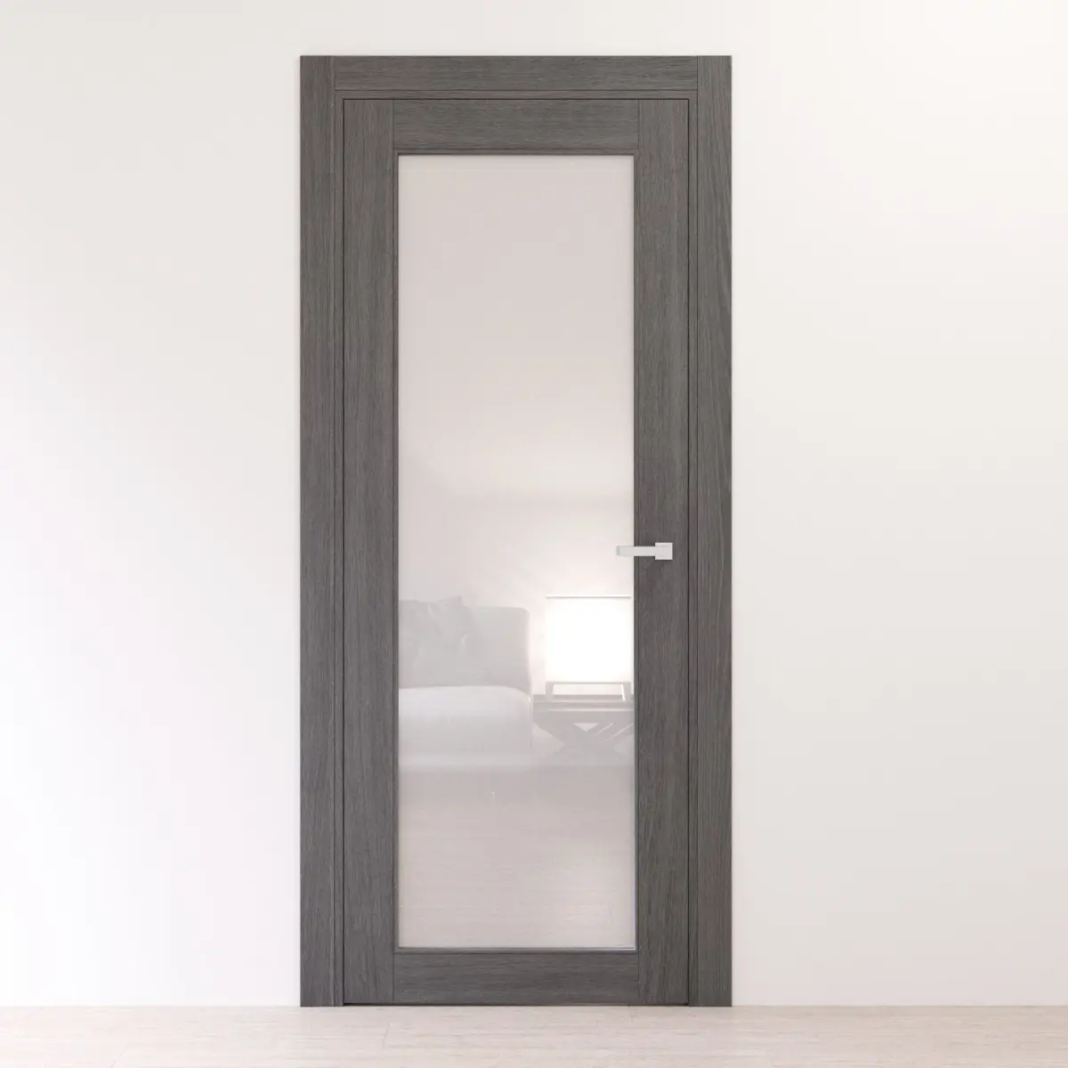 Gray oak door with satin glass.Radial corners of profiles.The size of the door leaf is 2100 x 800 x 41 mm.Prepared for high resolution realistic renders. Previews were rendered in 3ds Max 2015, Corona renderer.Lighting, cameras and studio setups are not included.