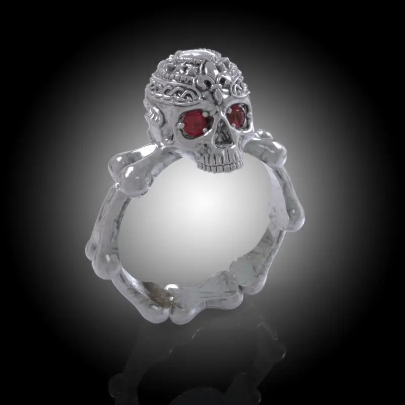 Stylish Skull Ring -Firenze Collection- Skull - Silver - Gold - Diamonds - RubyModel includes: Skull Element - Spacer