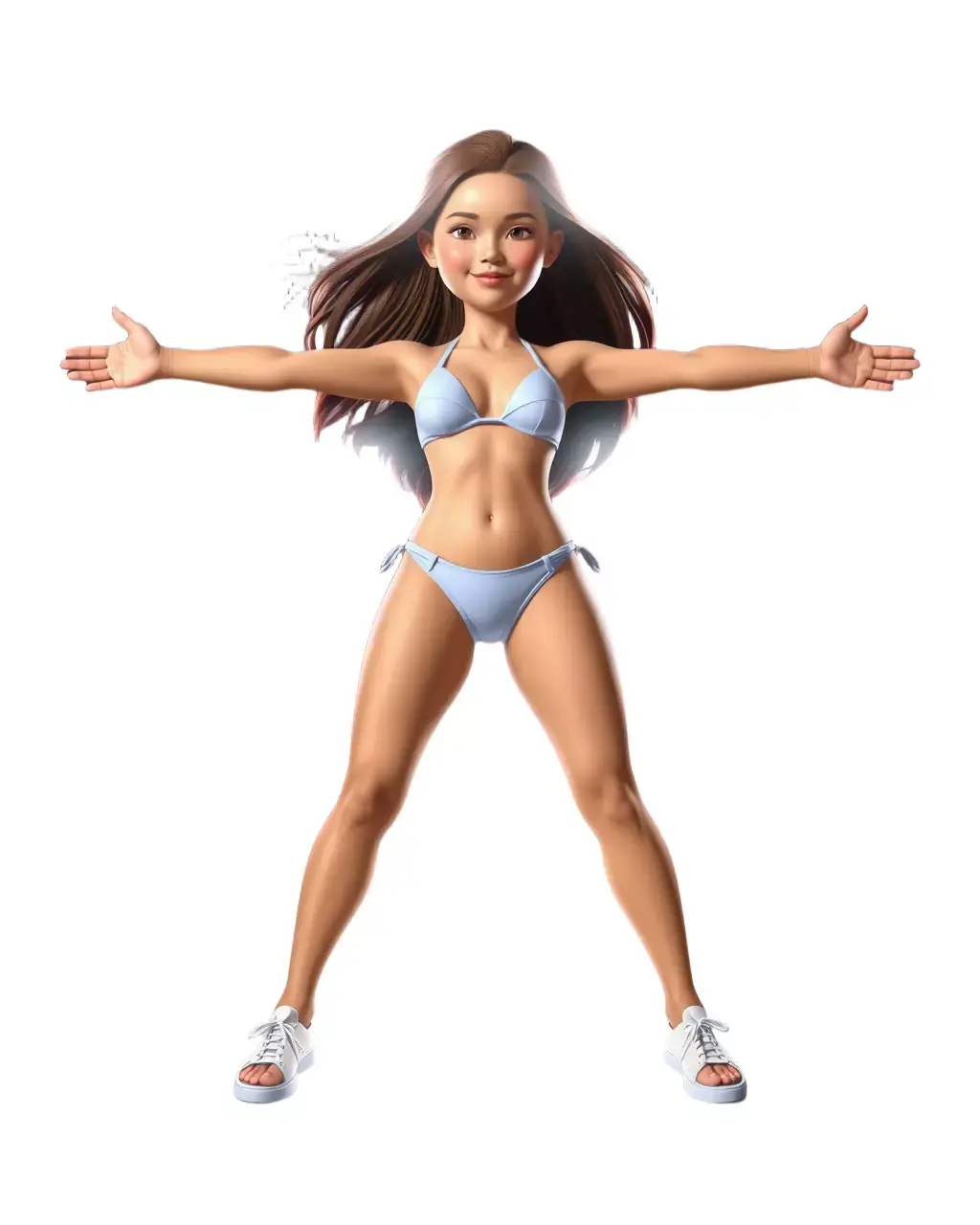 This 3D model features a stylish character wearing a light blue swimsuit and sneakers. Each model has 3 levels of detail: low-poly (1000 triangles for mobile), middle-poly (10,000 triangles for environment), and high-poly (100,000 triangles), which allows for the use of this model in production rendering (such as 3ds Max, Maya, Cinema4D, Blender, Vray/Corona/Cycles, and all other), game engines (Unity and Unreal compatible), and interactive presentations, providing a choice of detail based on the LOD System principle. Ideal for use in fashion simulations, character design, and virtual environments. The model's textures are PBR, include Diffuse, Normal Map, and reflection/roughness/metallic maps, which are suitable for any modern rendering engine. All models are accurately unwrapped and have no overlapping UVs. All textures are 4096x4096 in size. Please like and leave a comment for the model if you liked it.
