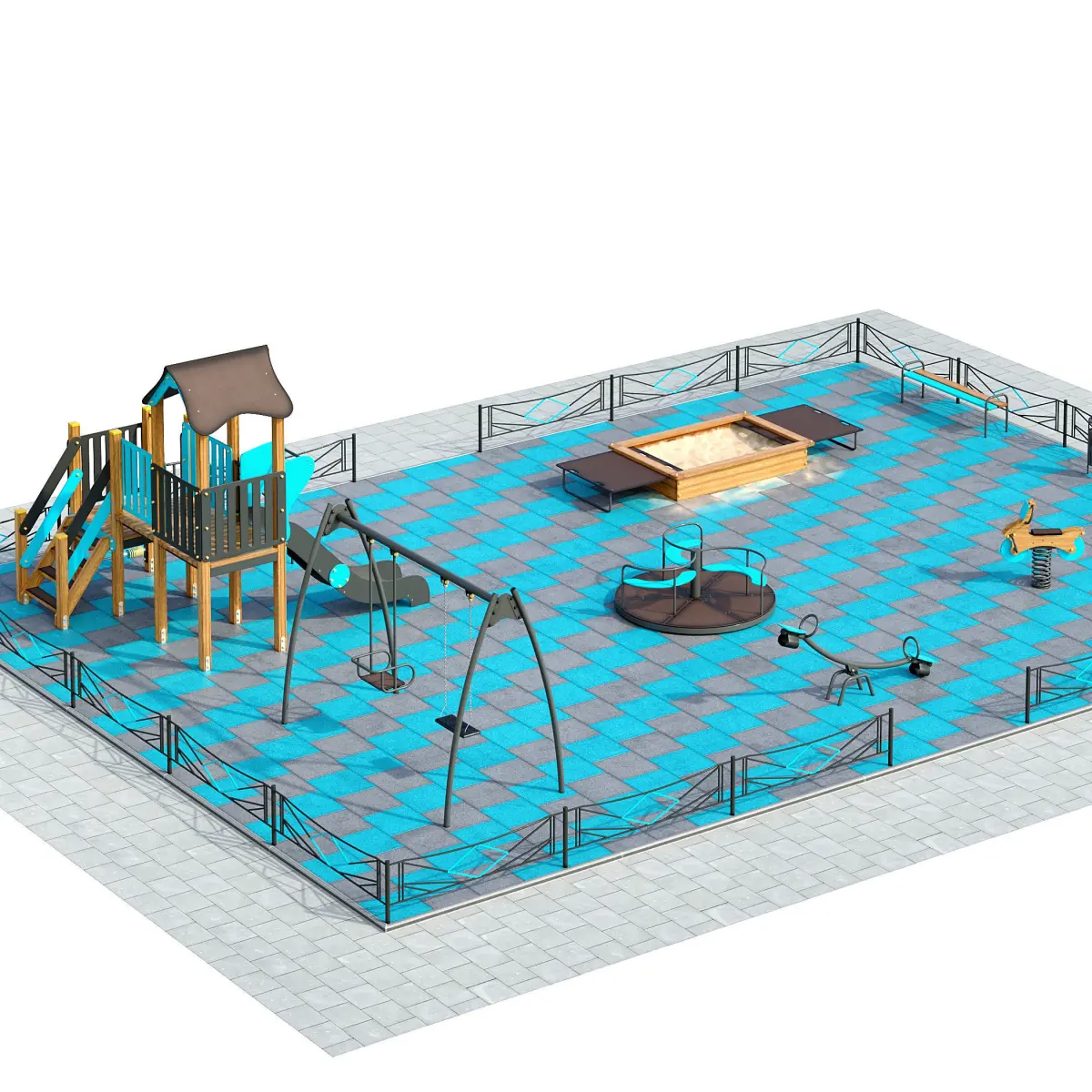 This Stylish turquoise playground is a high quality, photo real model that will enhance detail and realism to any of your rendering projects. The model has a fully materials applied and fully close up ready.