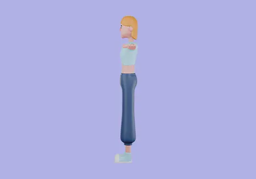 This stylized 3D female yoga trainer character features a calm cartoon woman in flexible workout attire, perfect for use in wellness games, meditation simulations, VR fitness apps, animations, or educational platforms.