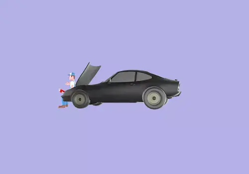 This stylized 3D male mechanic character features a cheerful cartoon technician sitting casually on the front bumper of a black sports car with its hood open. He holds a red pipe wrench in his right hand while extending his left arm outward as if greeting or interacting, making him perfect for automotive-themed scenes, workshops, repair animations, ads, or garage environments.