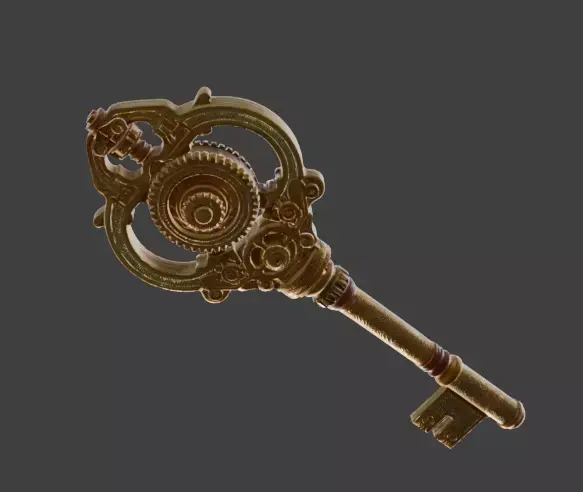 Tagssteampunk, key, mechanical, clockwork, gears, victorian, industrial, brass, copper, ornate, 3d model, prop, game asset, quest item, stylized