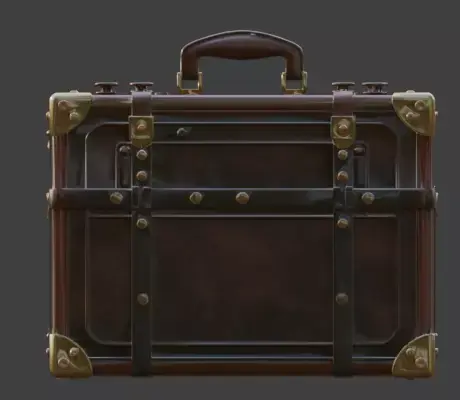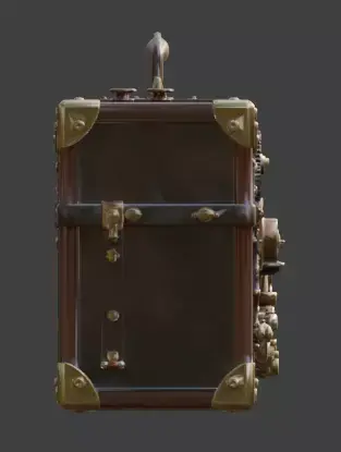 Tagssteampunk, suitcase, trunk, tool case, briefcase, victorian, industrial, gears, leather, brass, 3d model, prop, game asset, mechanical, detailed
