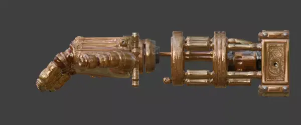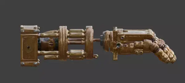 Tagssteampunk, mechanical arm, prosthetic, robotic, hand, brass, copper, victorian, industrial, 3d model, prop, stylized, detailed, game asset, ornat