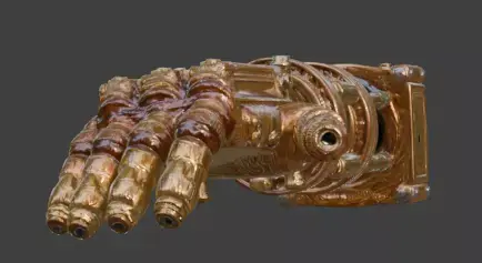 Articulated Hand Geometry: Meticulously designed with multi-segmented fingers and detailed hydraulic-style knuckle joints for a high-performance appearance.