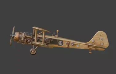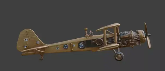 Tagssteampunk, reconnaissance, aircraft, biplane, victorian, industrial, brass, gears, pistons, steam vents, analog gauges, 3d model, game asset, vehicle